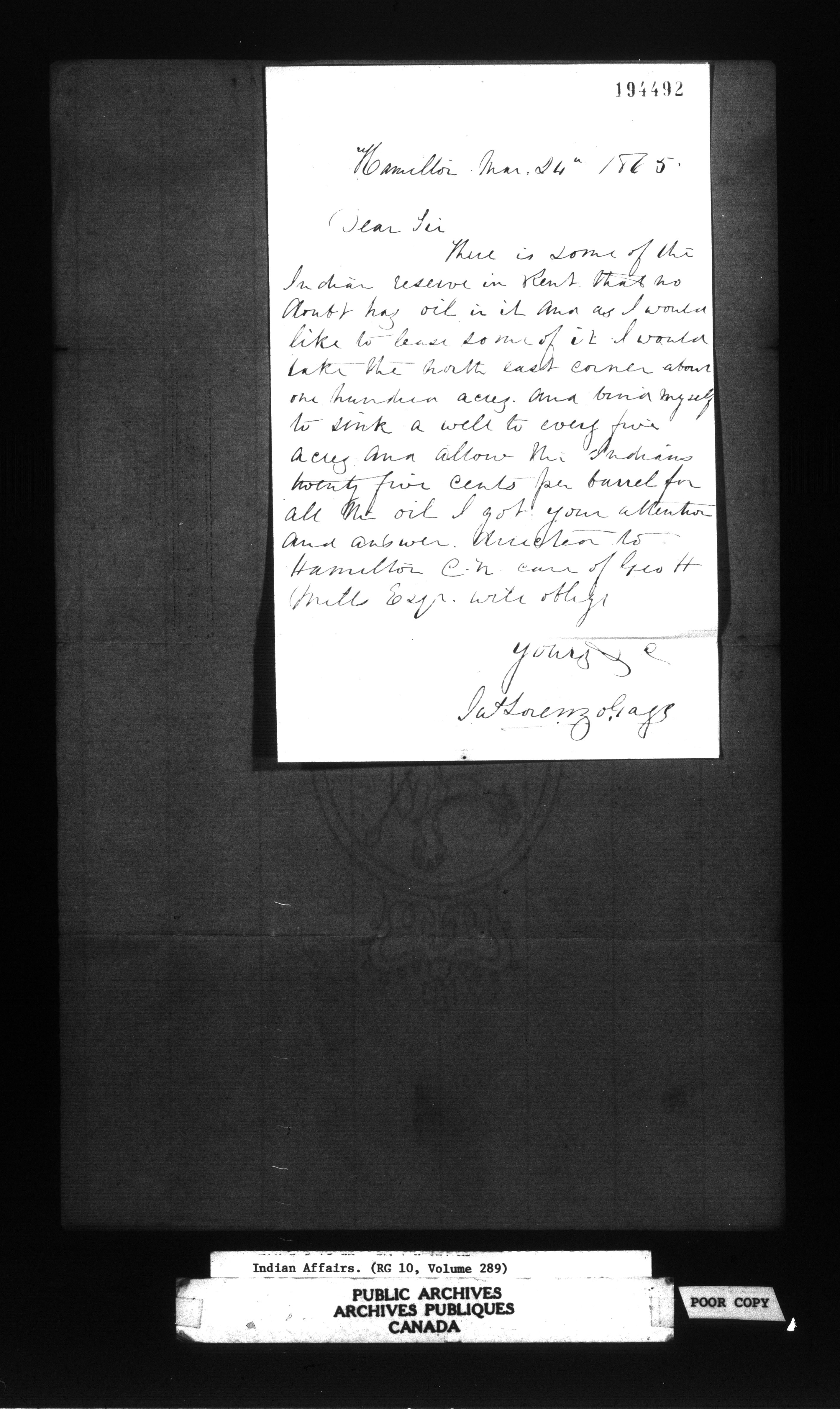 Office of the Deputy Superintendent General of Indian Affairs : Correspondence, 1862-1896 : C-12667