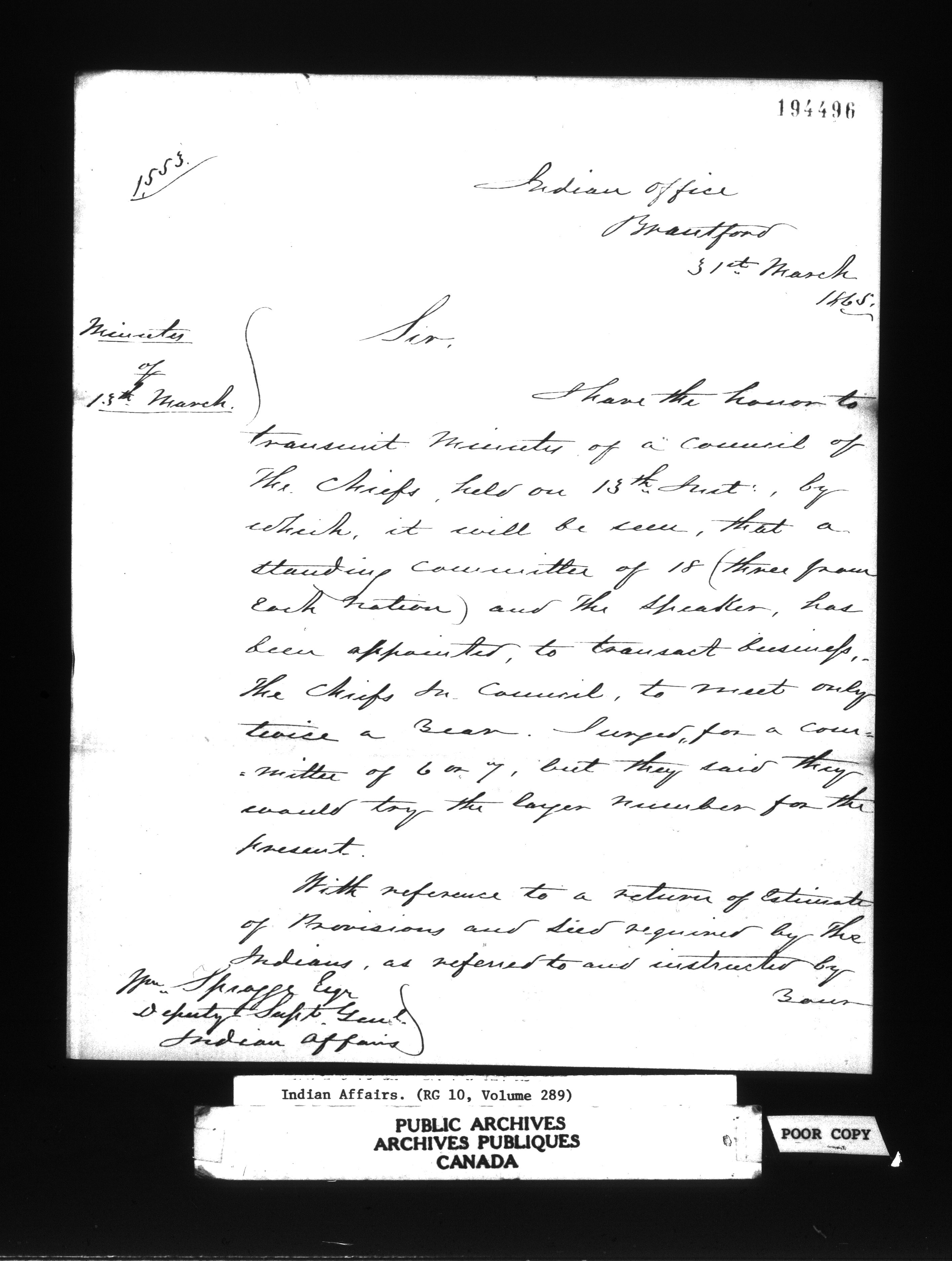 Office of the Deputy Superintendent General of Indian Affairs : Correspondence, 1862-1896 : C-12667