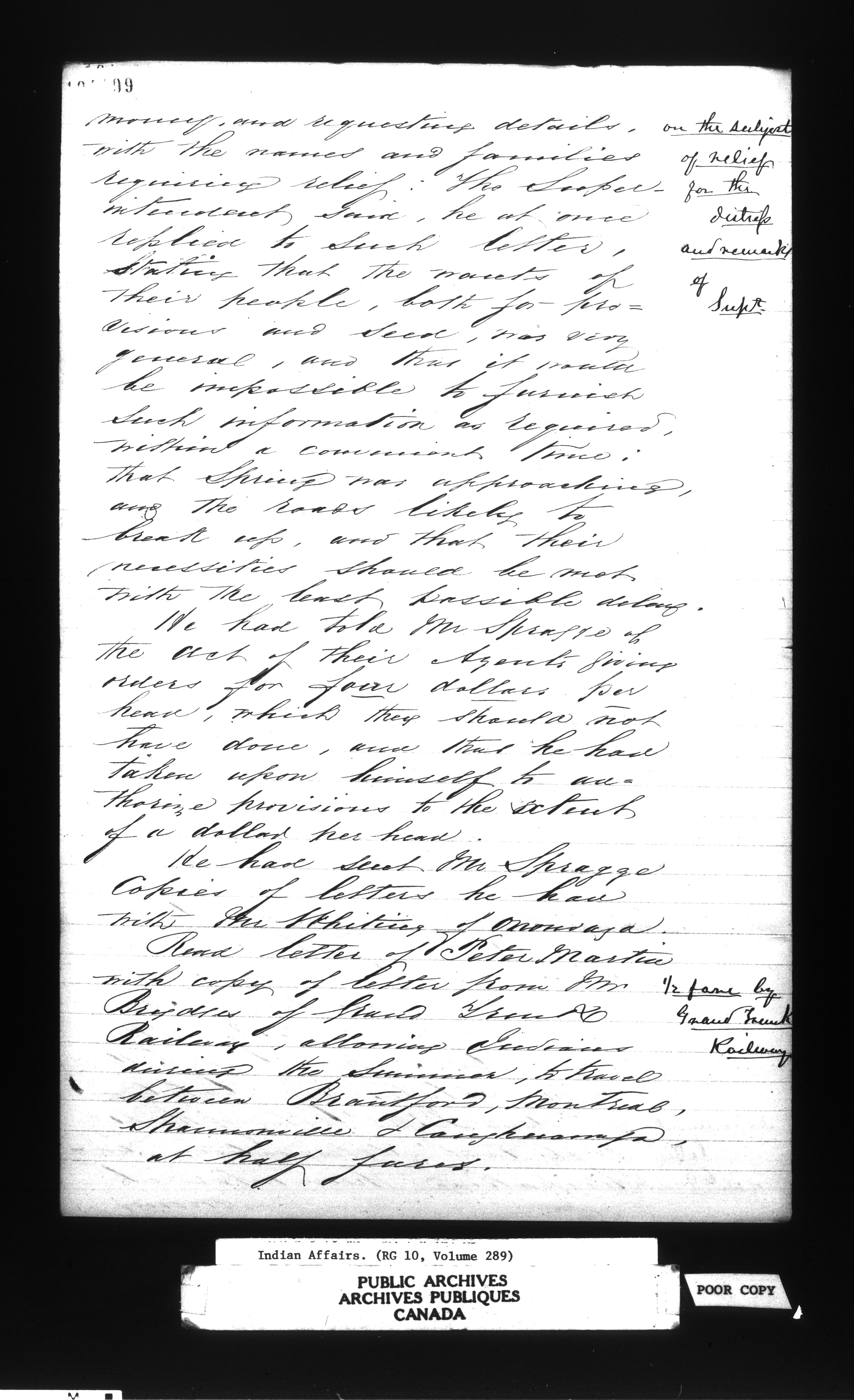Office of the Deputy Superintendent General of Indian Affairs : Correspondence, 1862-1896 : C-12667