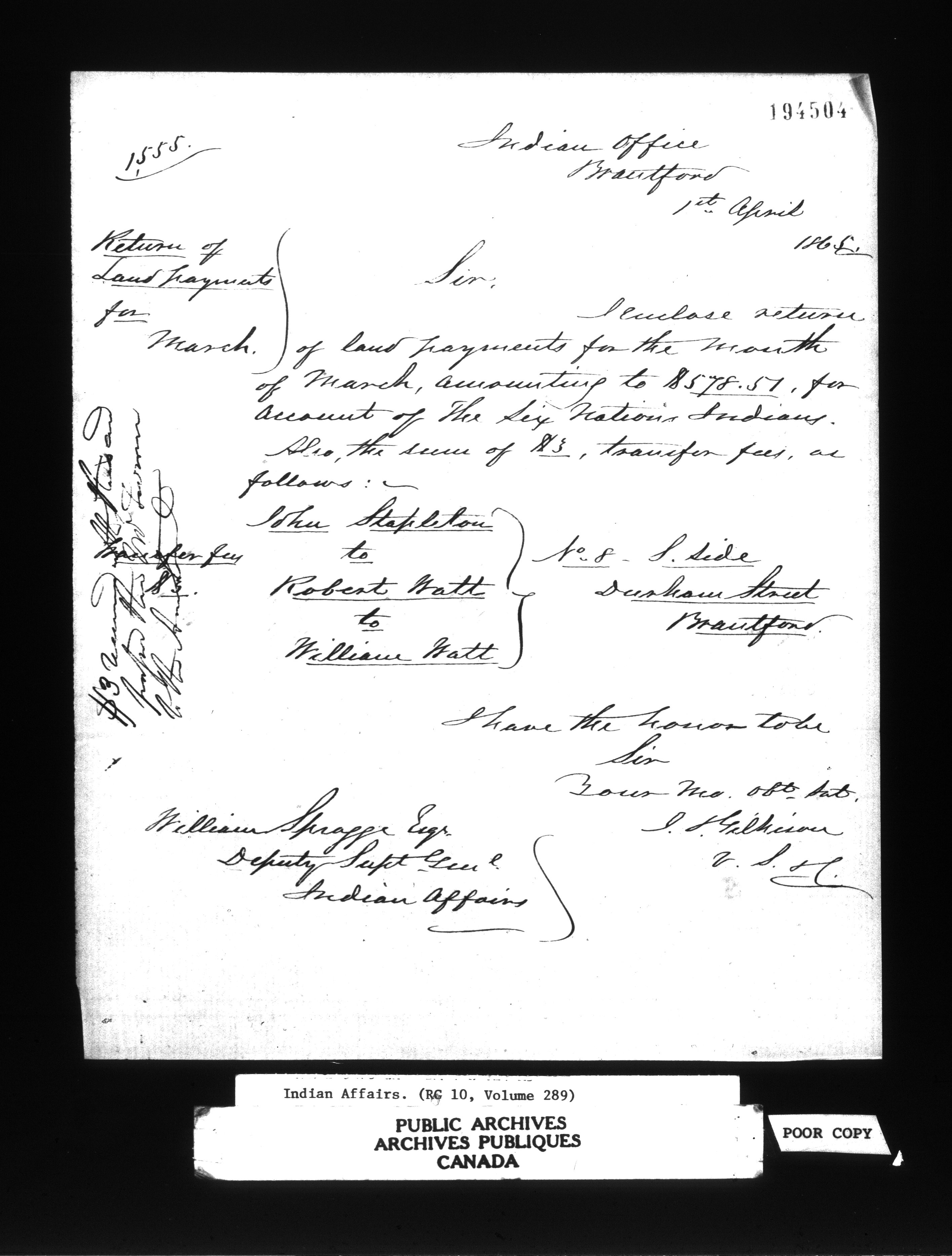 Office of the Deputy Superintendent General of Indian Affairs : Correspondence, 1862-1896 : C-12667