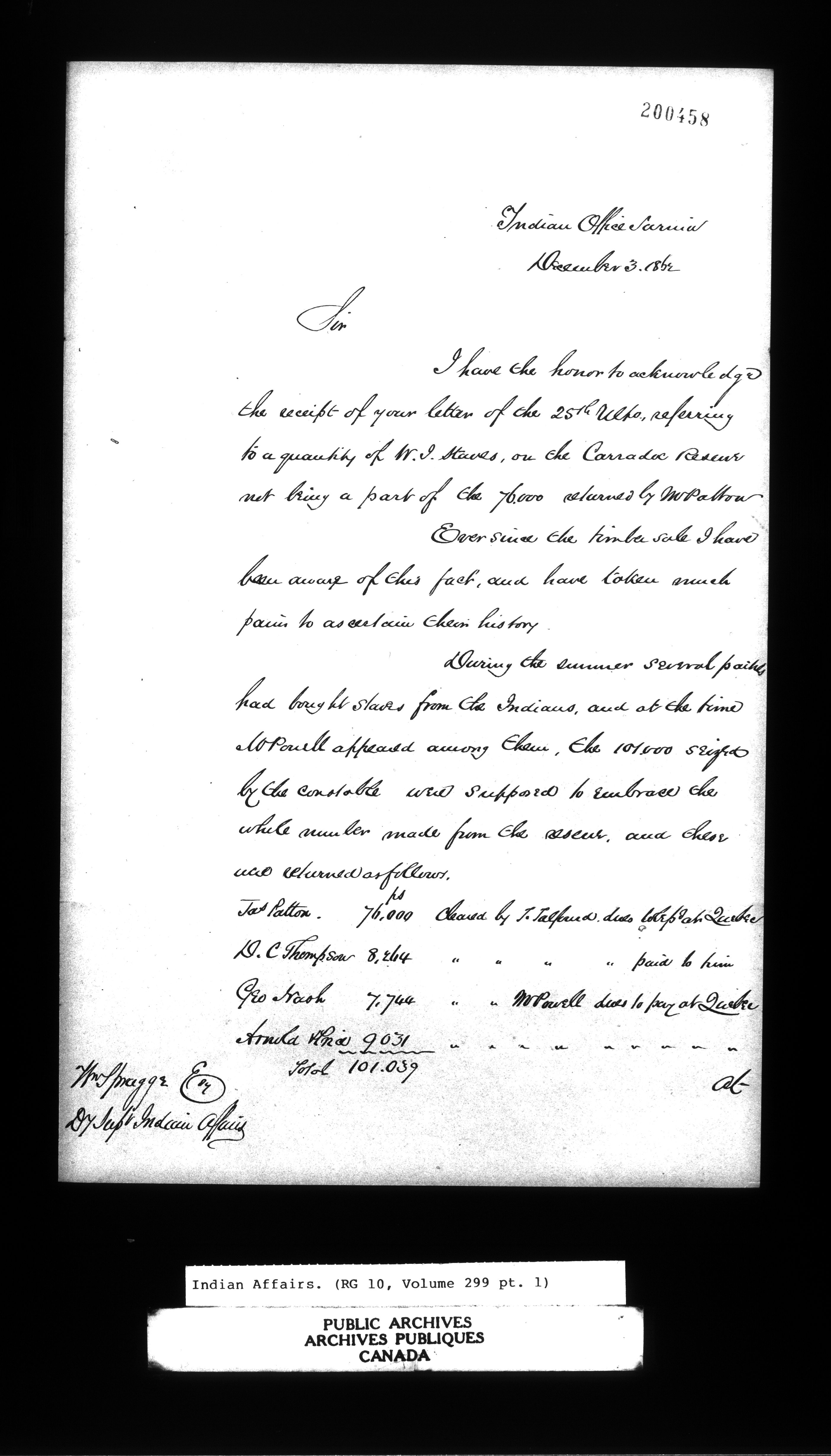 Office of the Deputy Superintendent General of Indian Affairs : Correspondence, 1862-1896 : C-12674