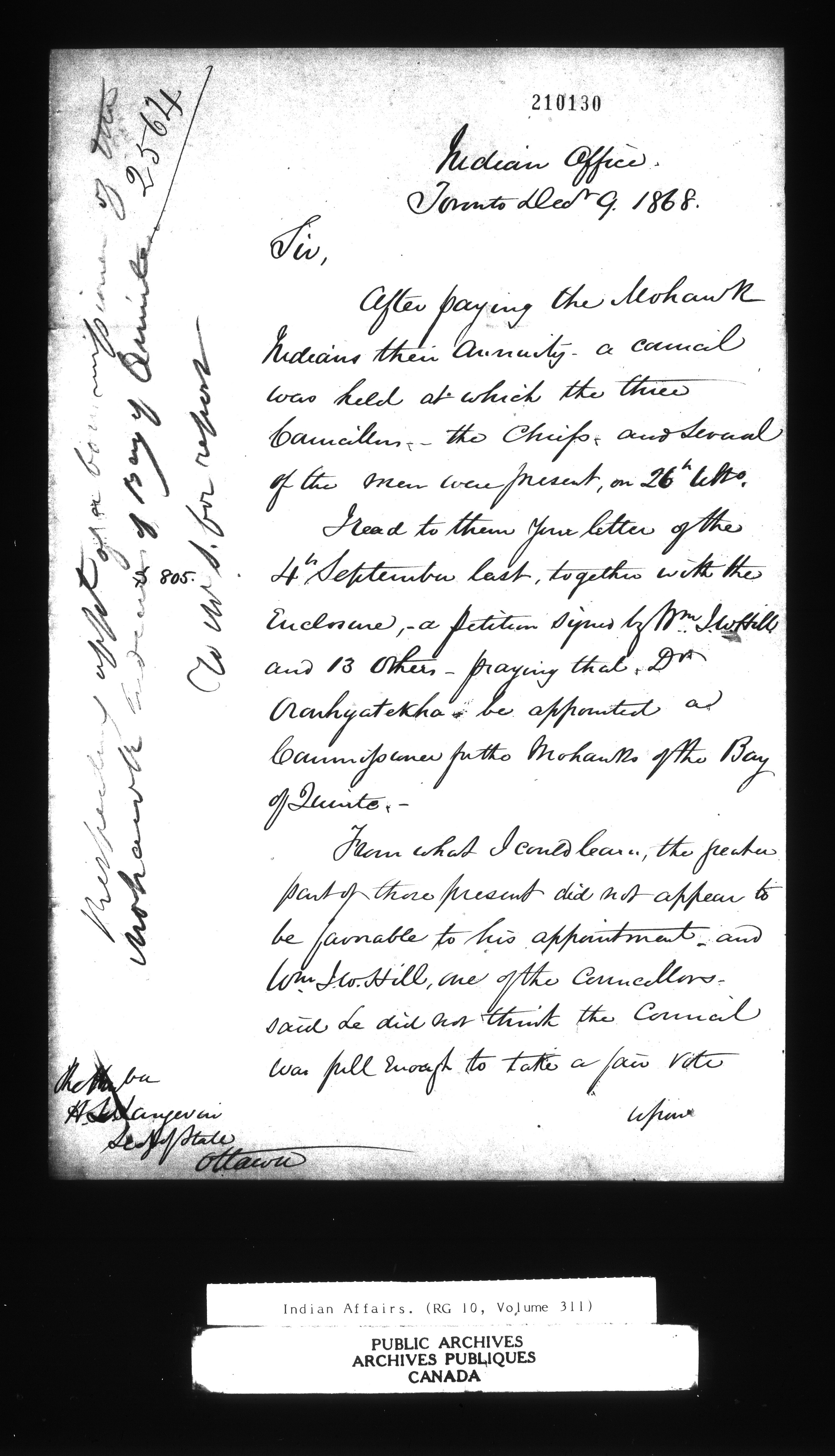 Office of the Deputy Superintendent General of Indian Affairs : Correspondence, 1862-1896 : C-12683
