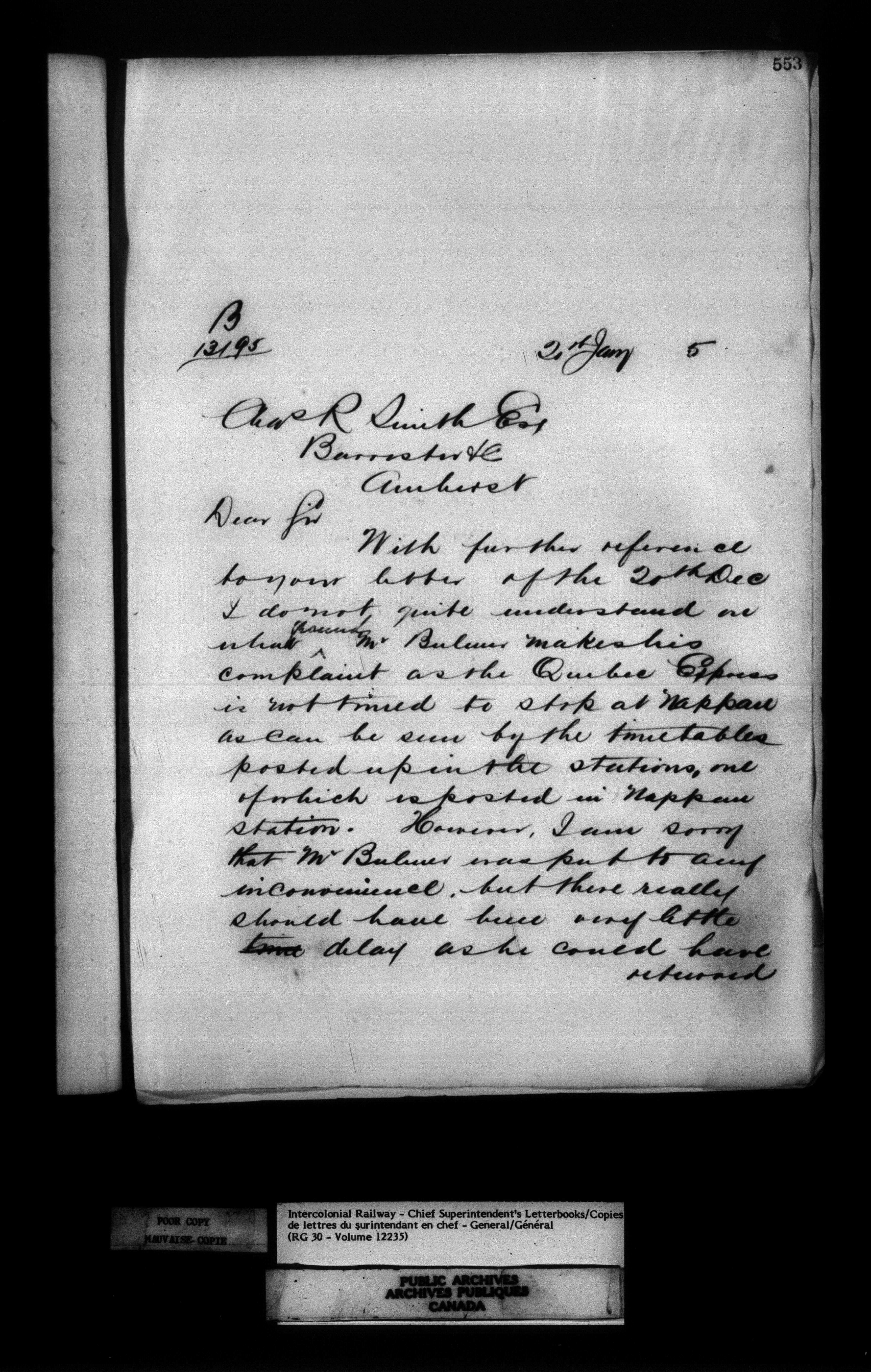 Canadian Government Railways : Office of the Chief Superinten : C-12757
