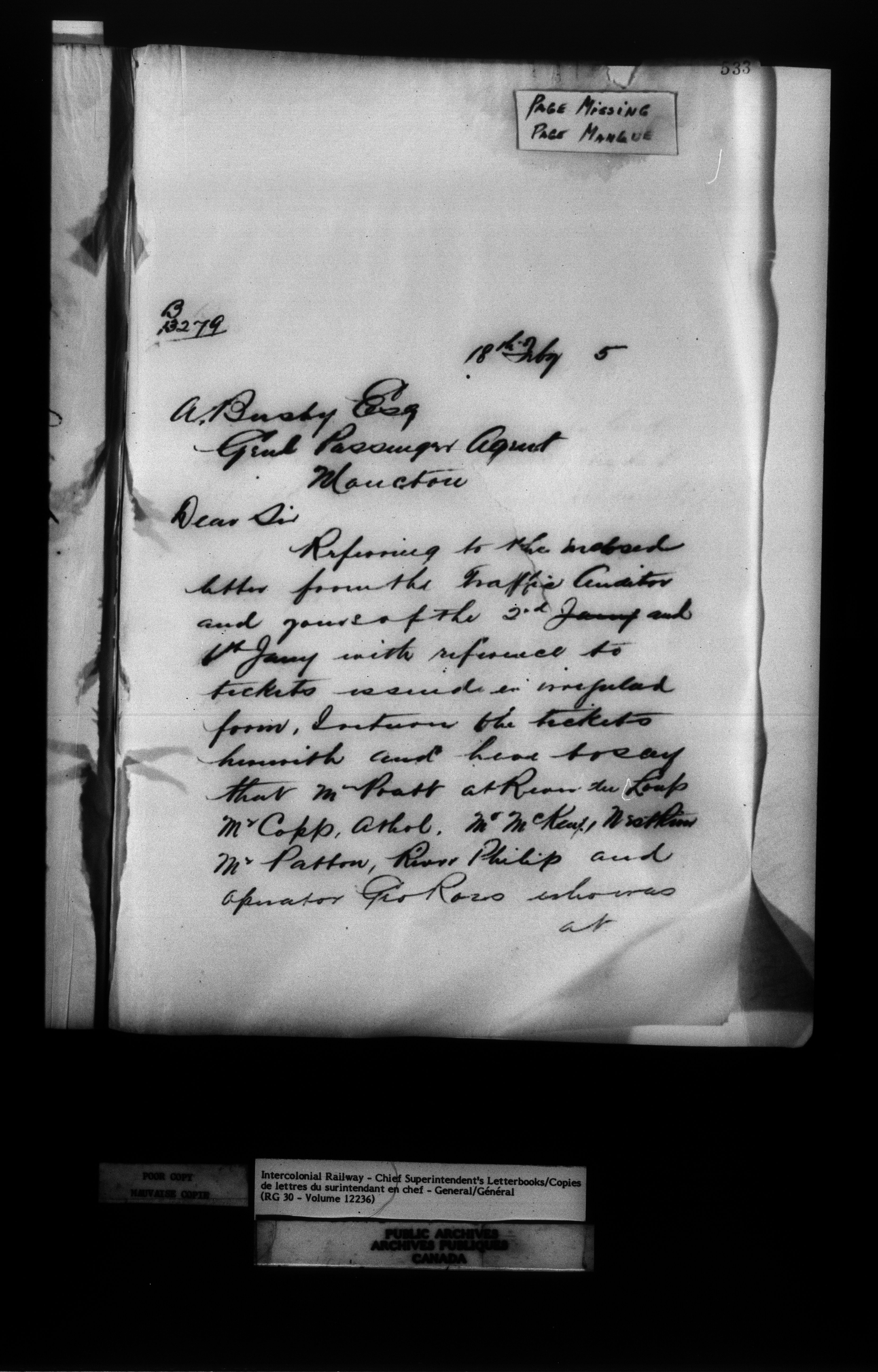 Canadian Government Railways : Office of the Chief Superinten : C-12759