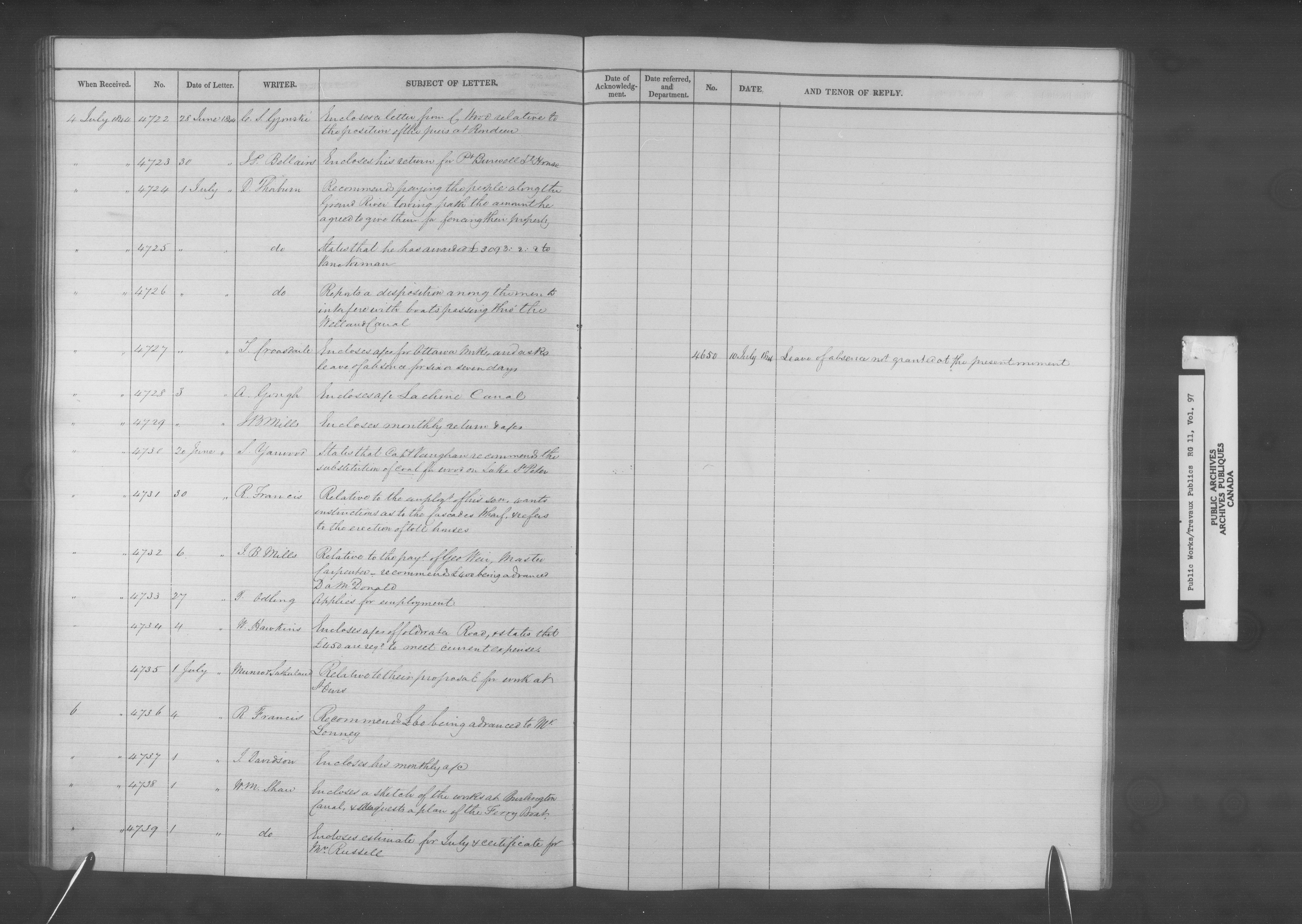Department of Public Works, Board of Works records: registers of letters received - 12796