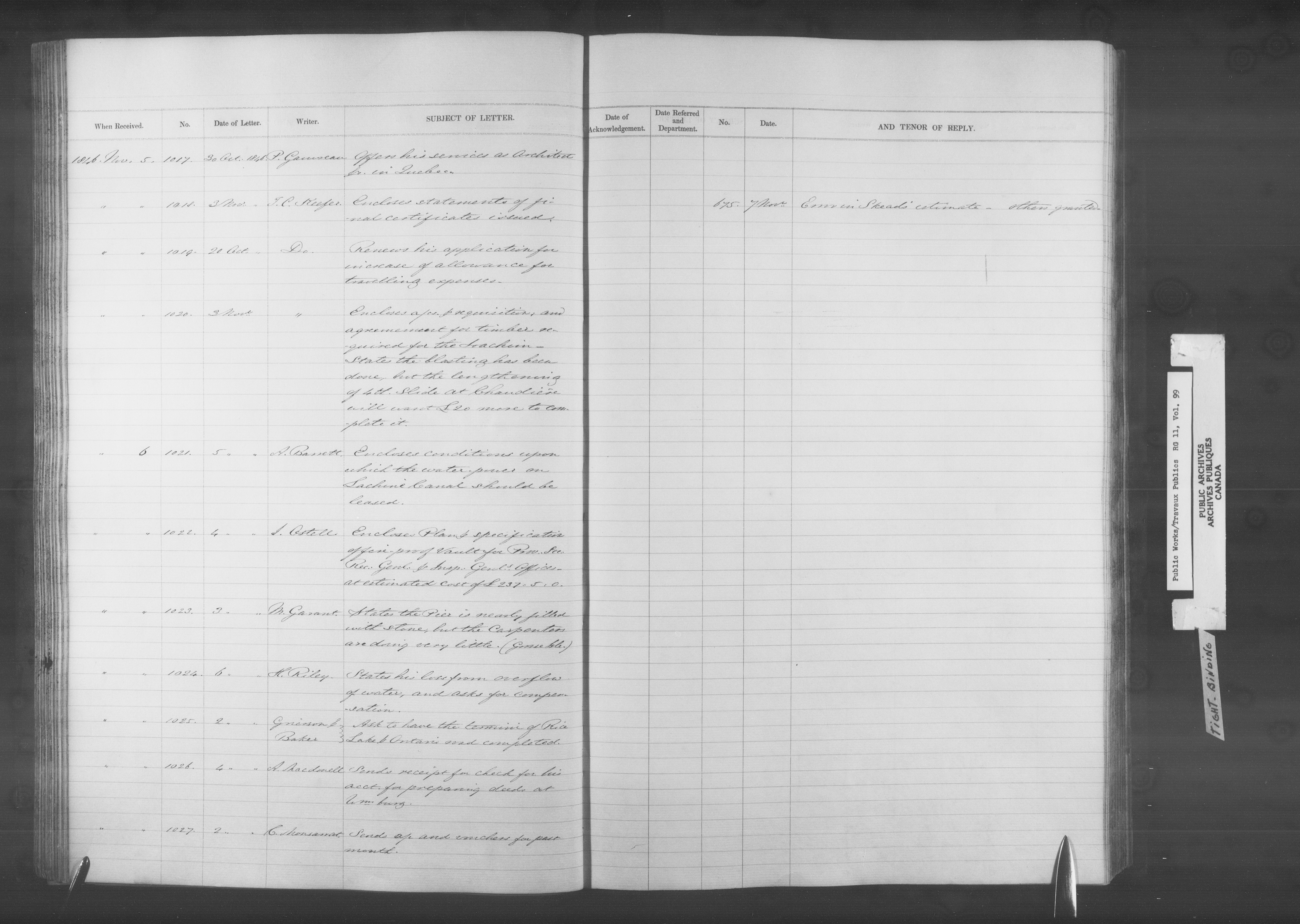 Department of Public Works, Board of Works records: registers of letters received - 12796