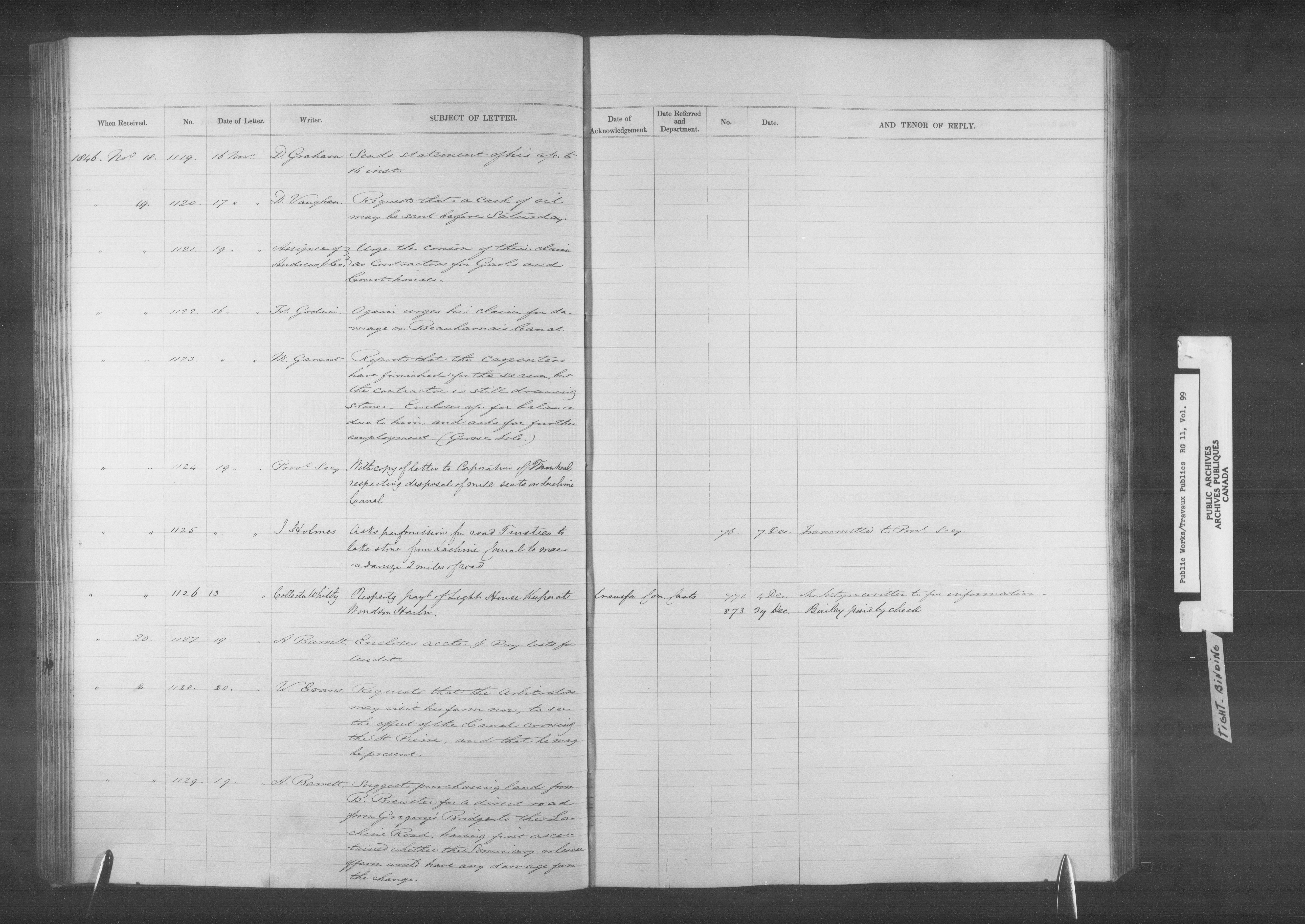 Department of Public Works, Board of Works records: registers of letters received - 12796
