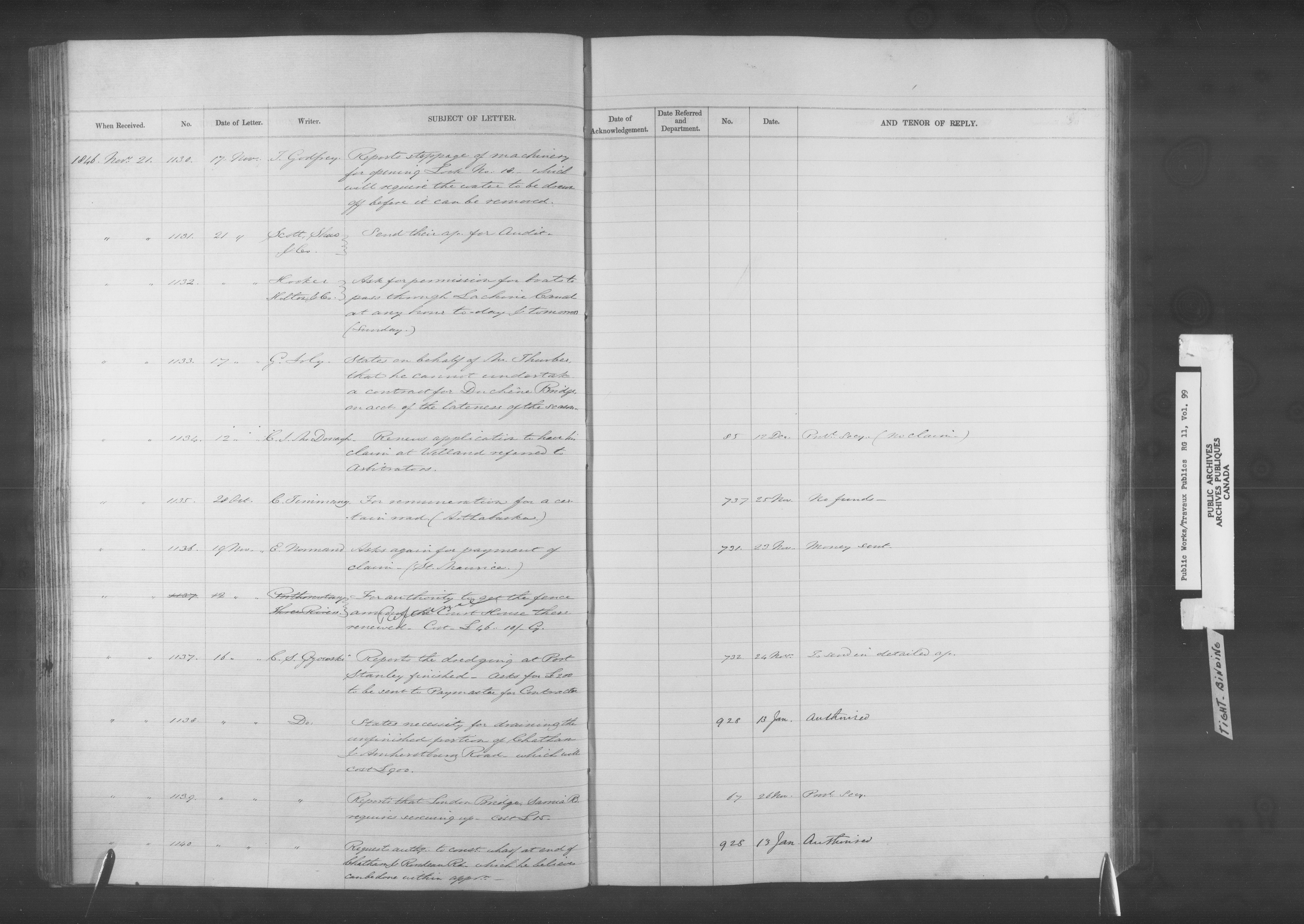 Department of Public Works, Board of Works records: registers of letters received - 12796