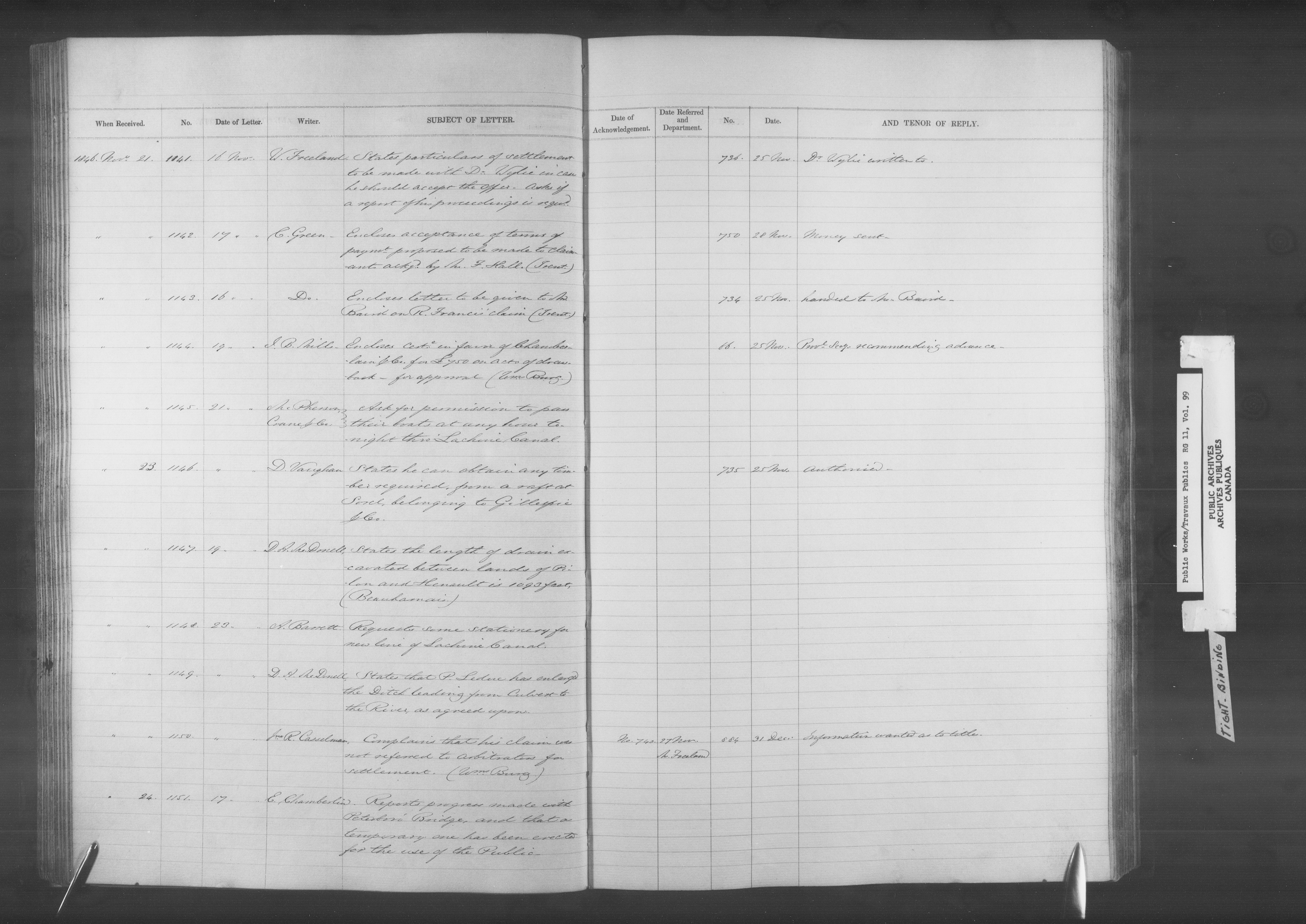 Department of Public Works, Board of Works records: registers of letters received - 12796