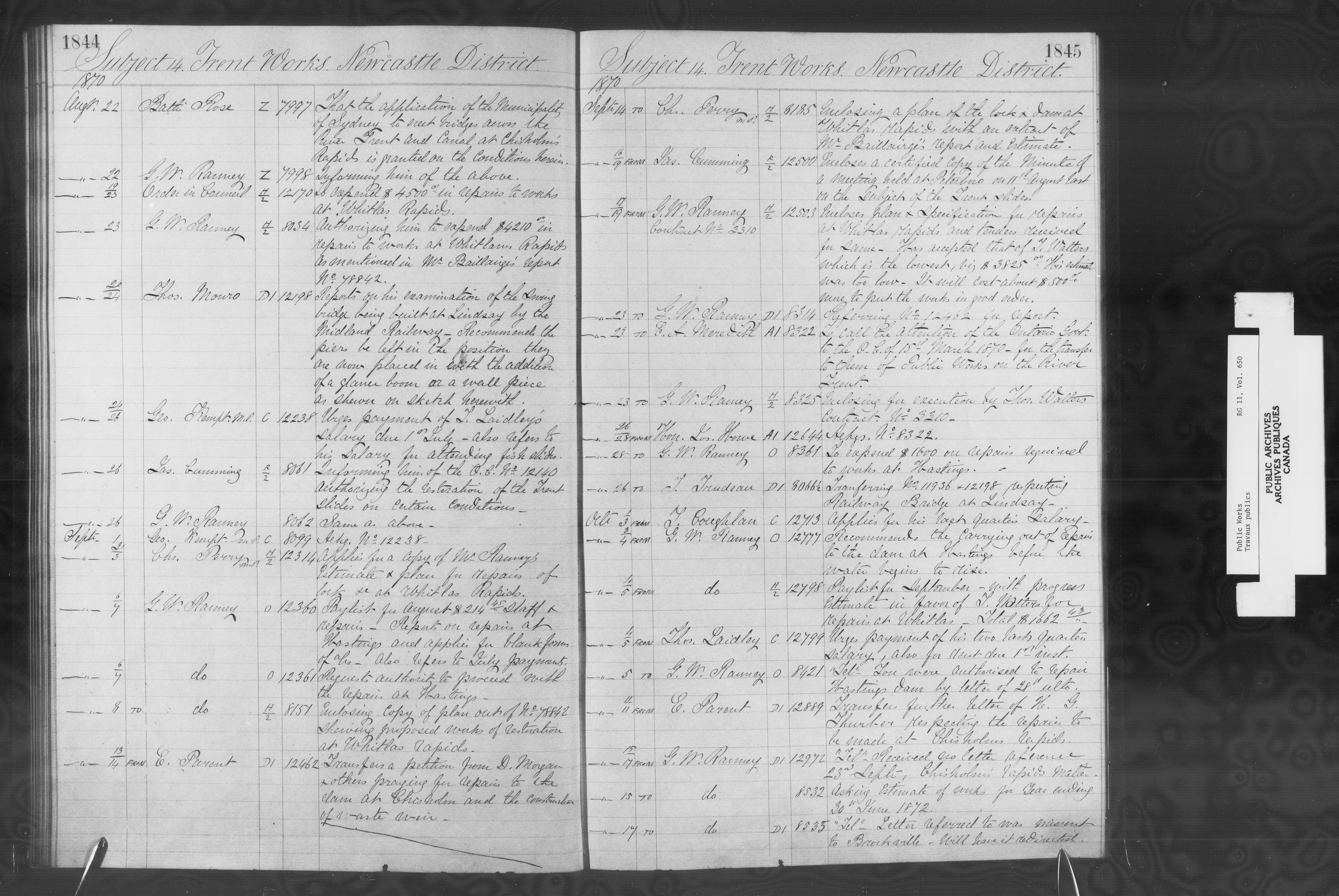 Subject registers from Public Works's docket registry system - 12809