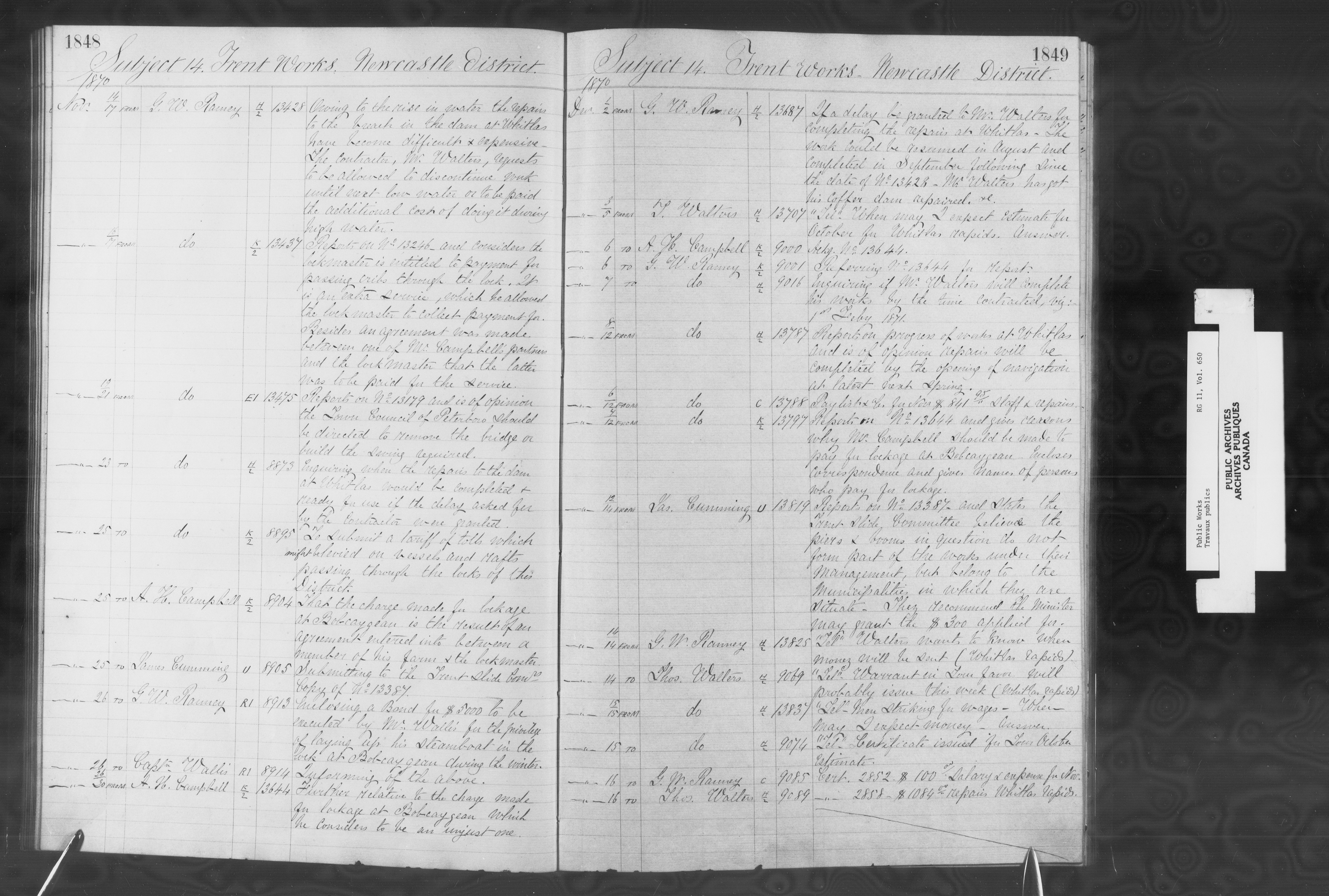 Subject registers from Public Works's docket registry system - 12809