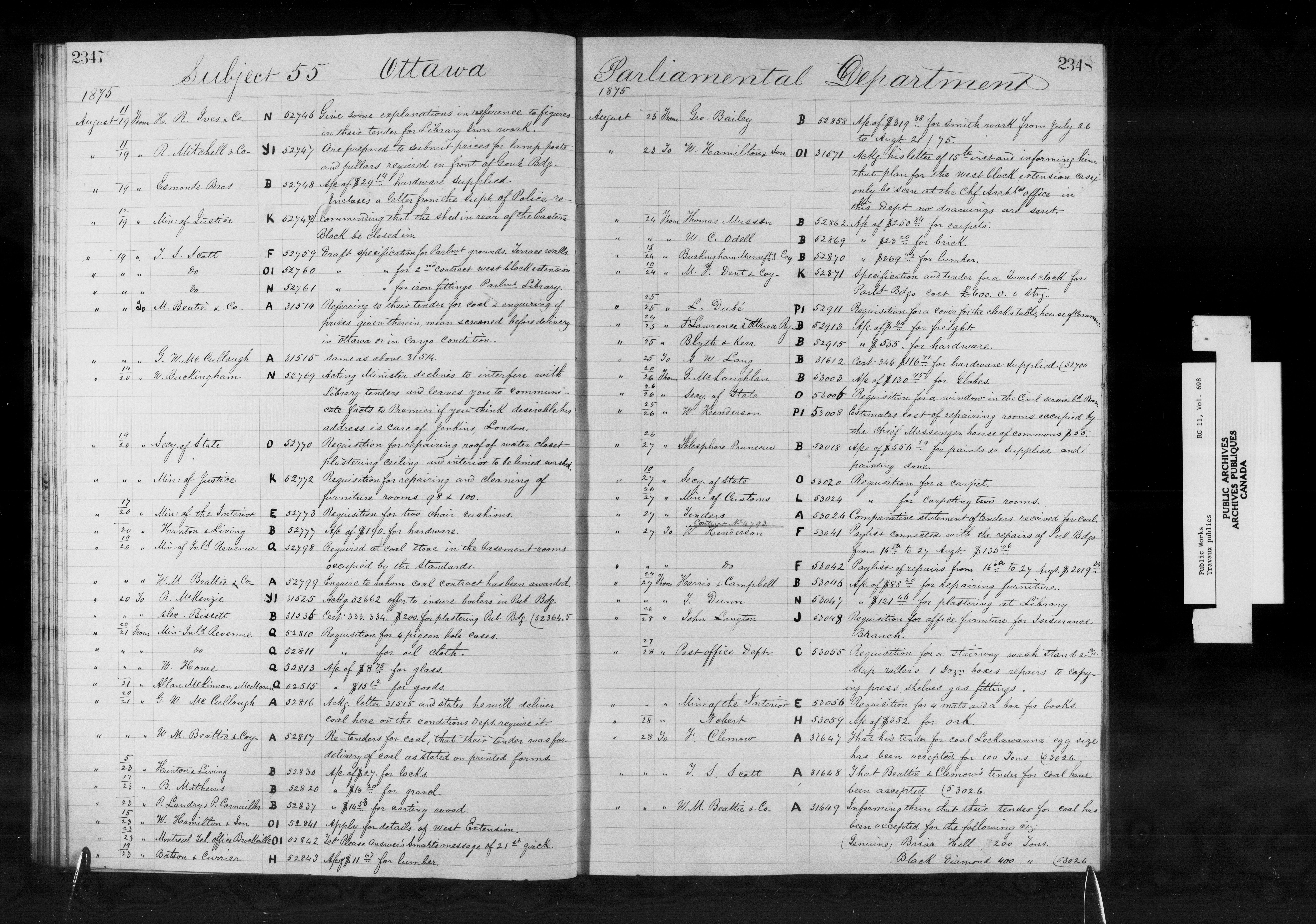 Subject registers from Public Works's docket registry system - 12815