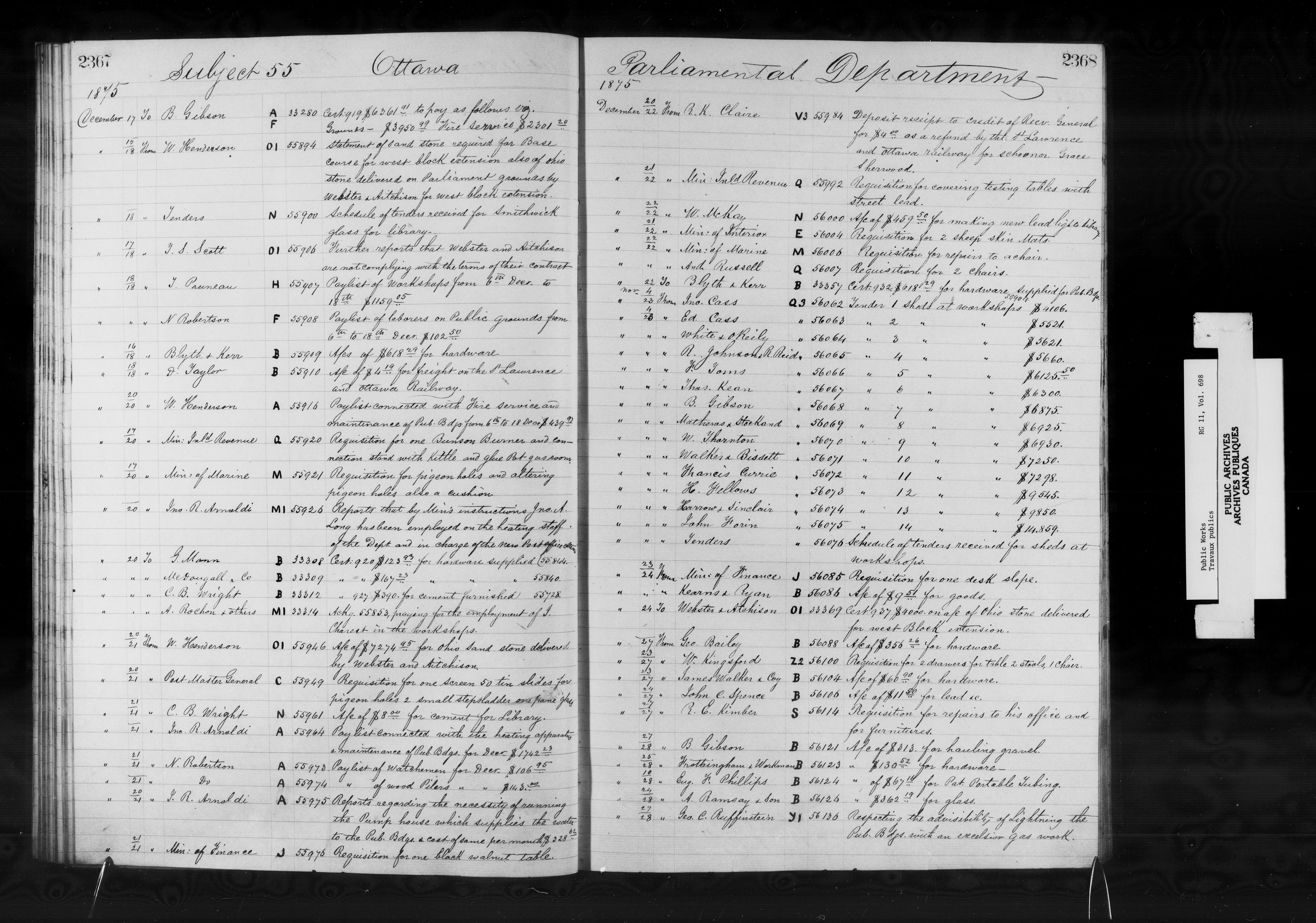 Subject registers from Public Works's docket registry system - 12815