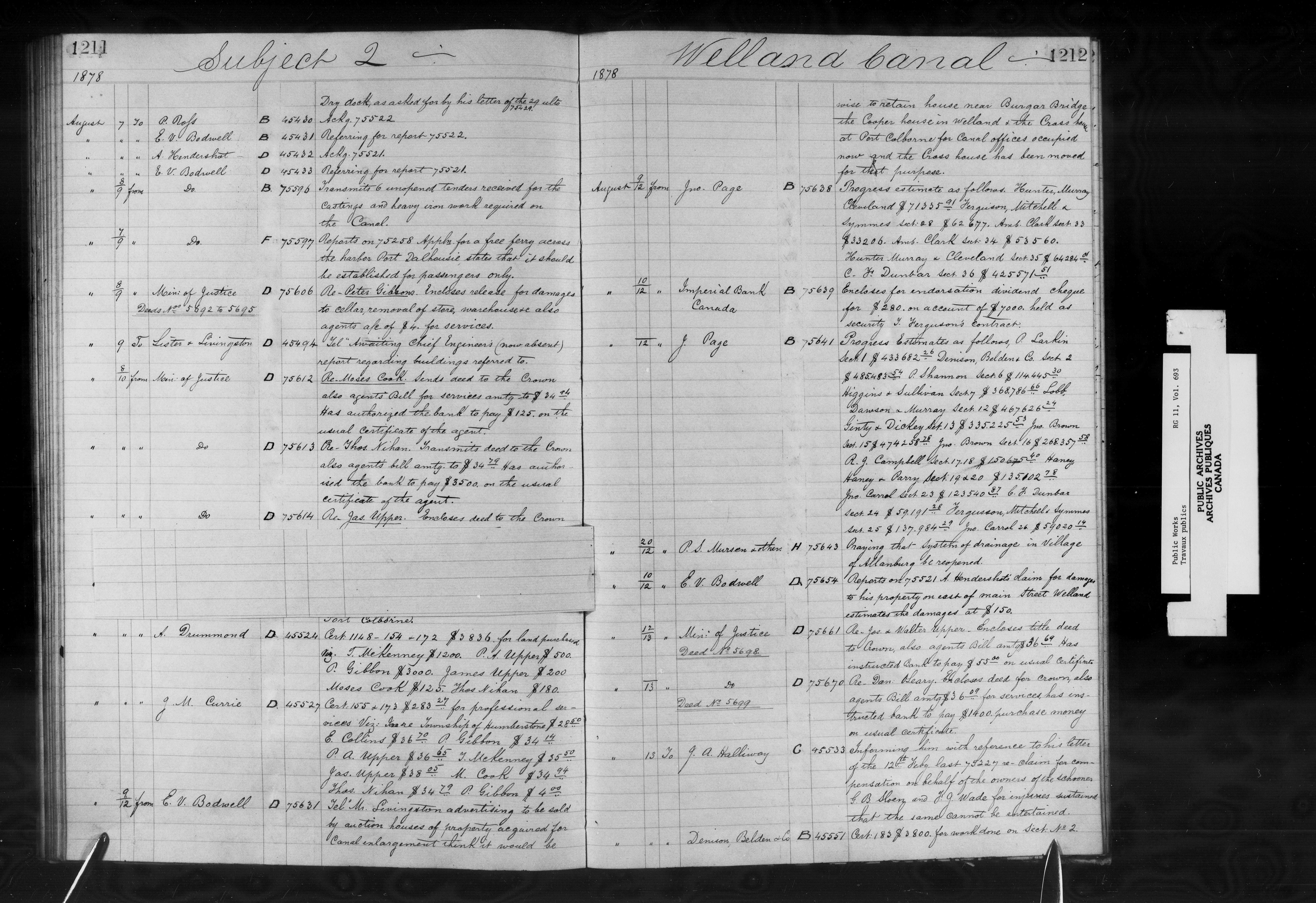 Subject registers from Public Works's docket registry system - 12815