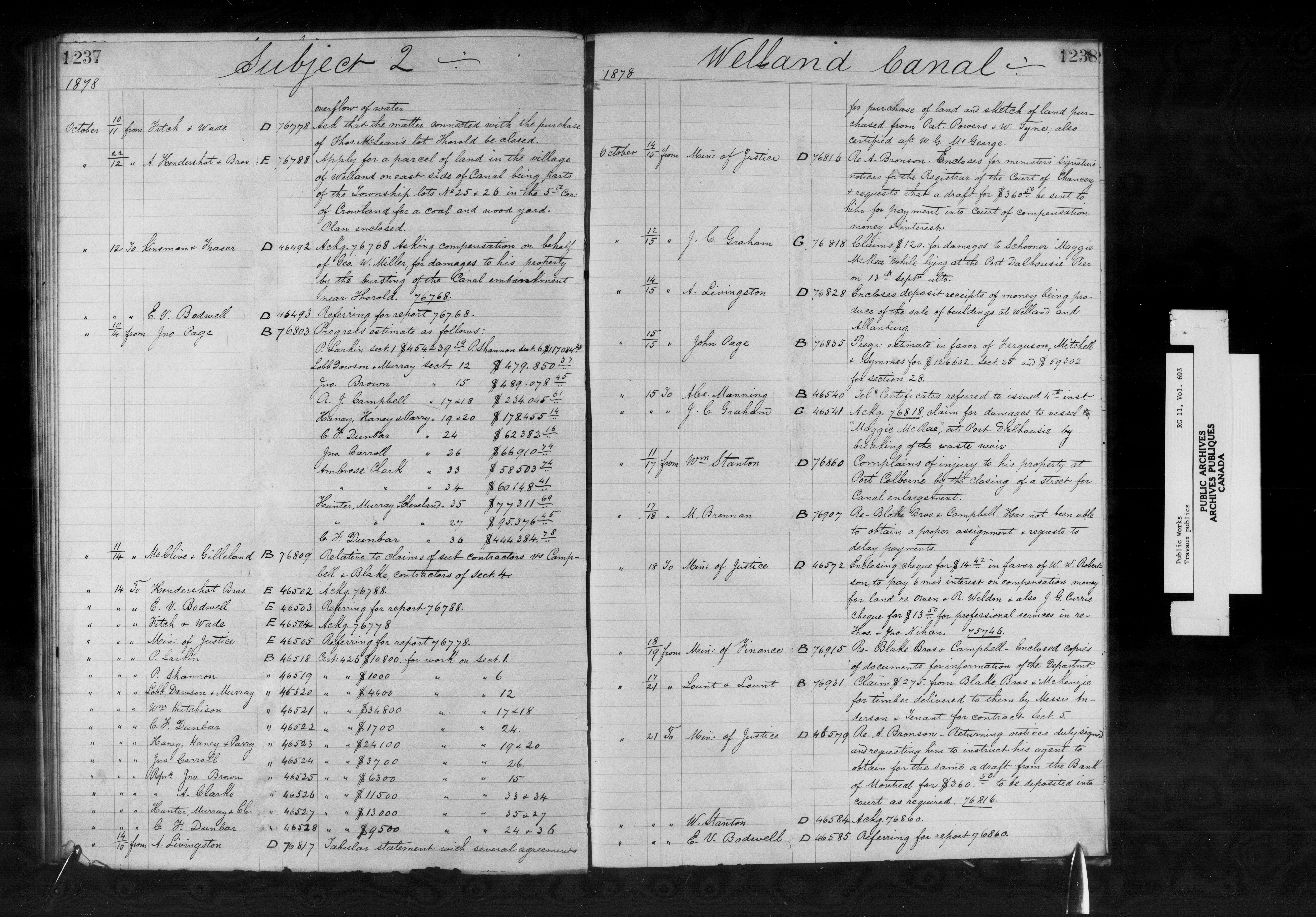 Subject registers from Public Works's docket registry system - 12815