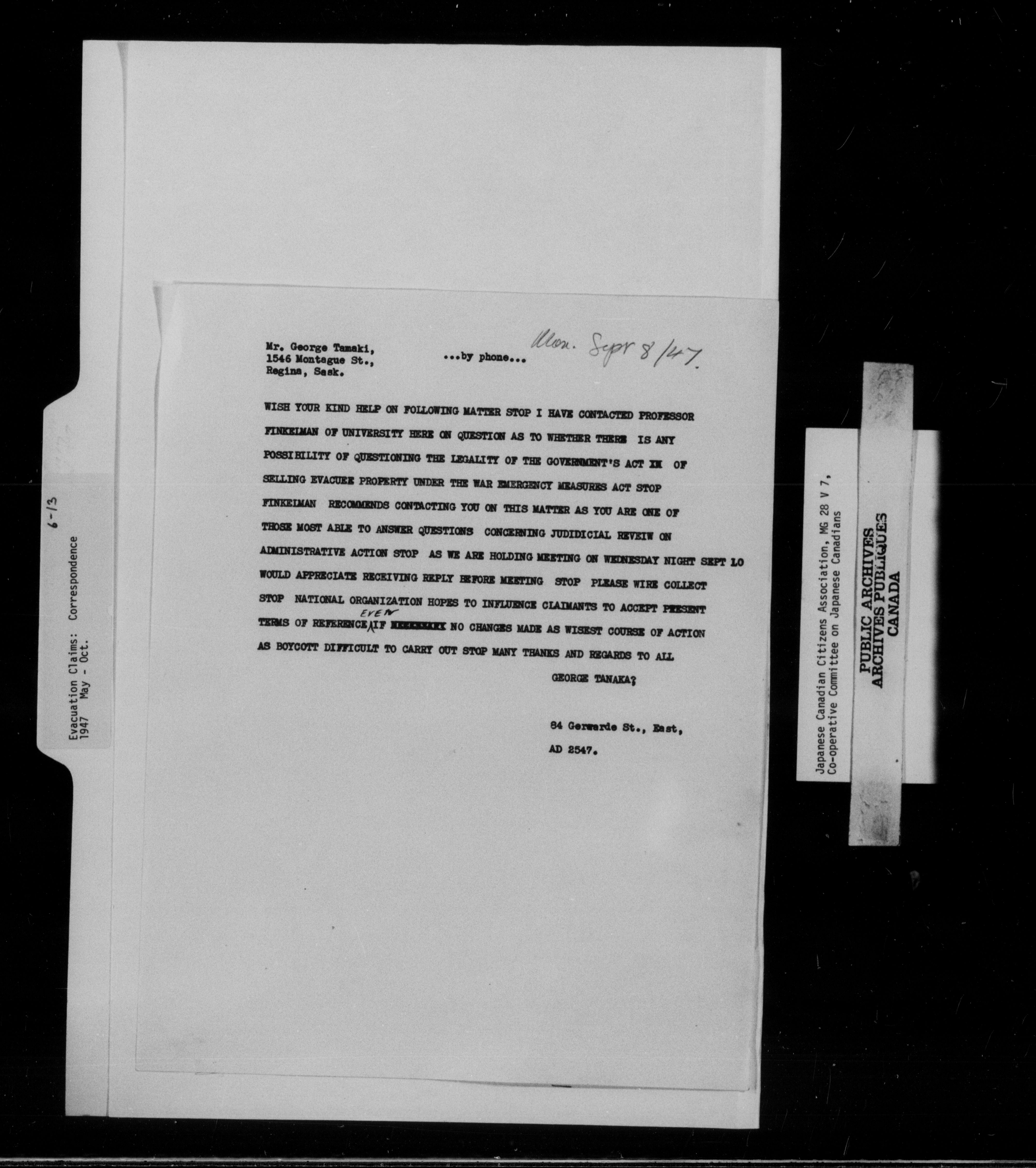 Japanese Canadian Citizen Association : Evacuation claims - 12822