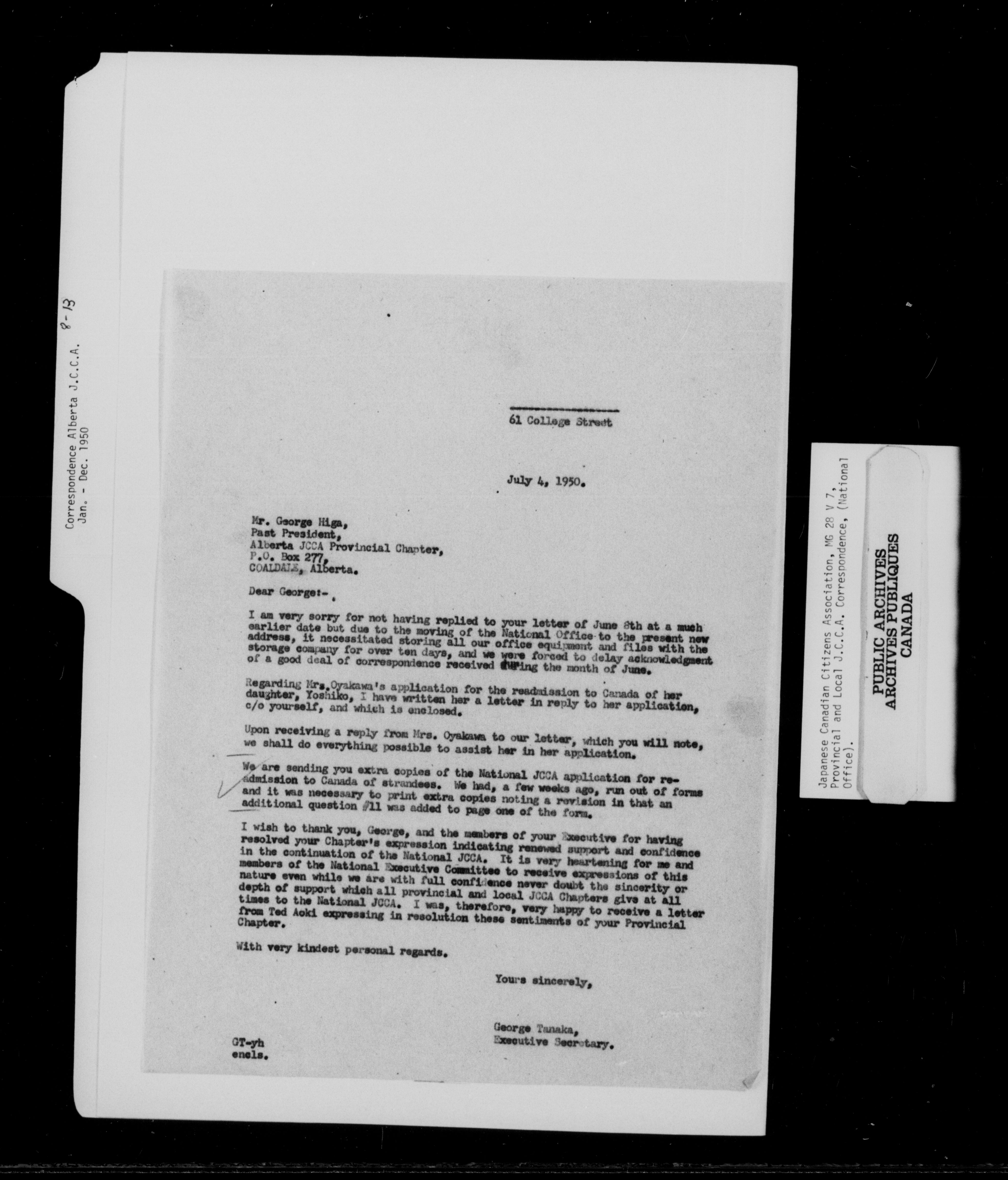 Japanese Canadian Citizen Association : Provincial and local J.C.C.A correspondence with the National Office - 12825