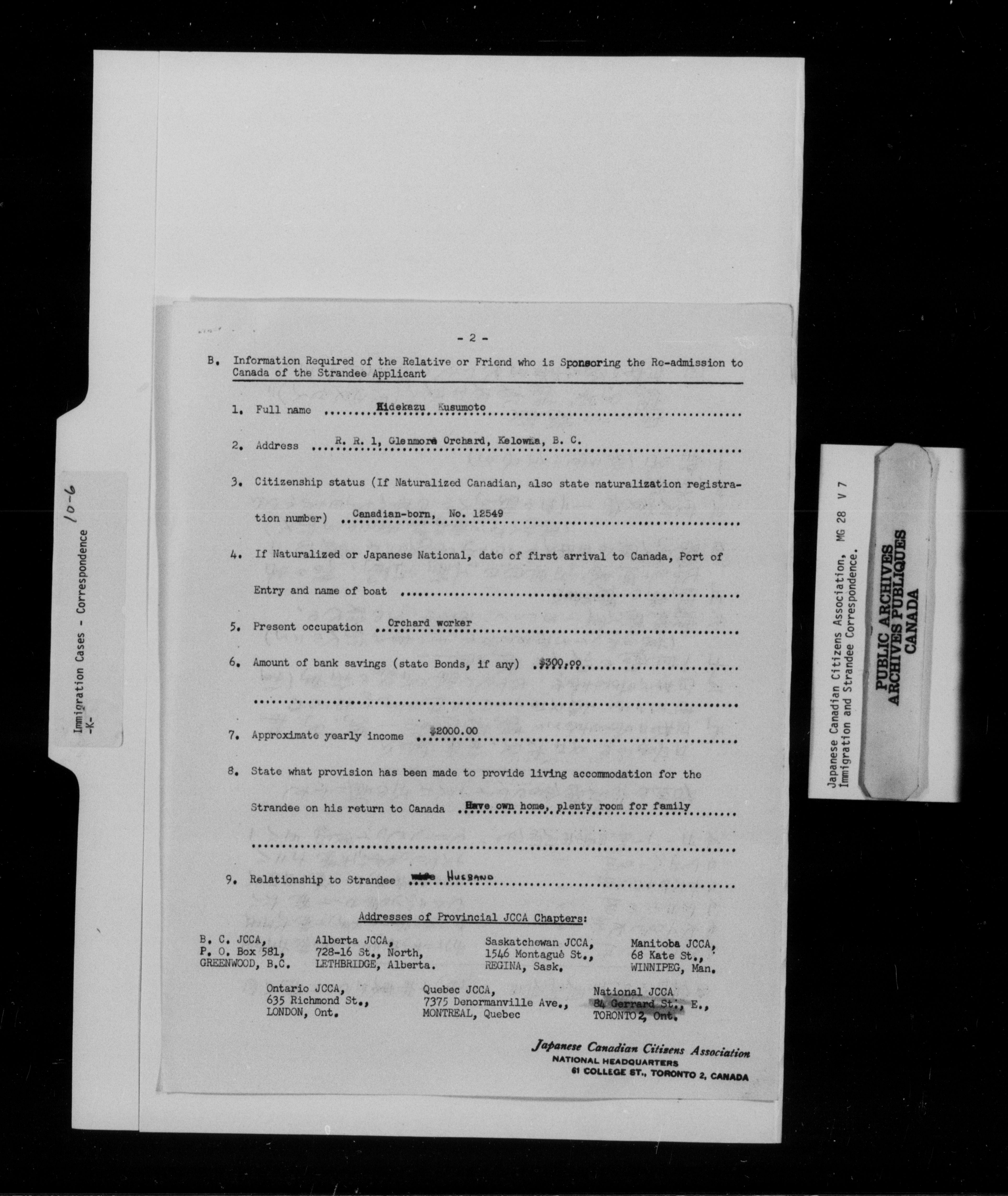 Japanese Canadian Citizen Association : Submissions and correspondence with government - 12826
