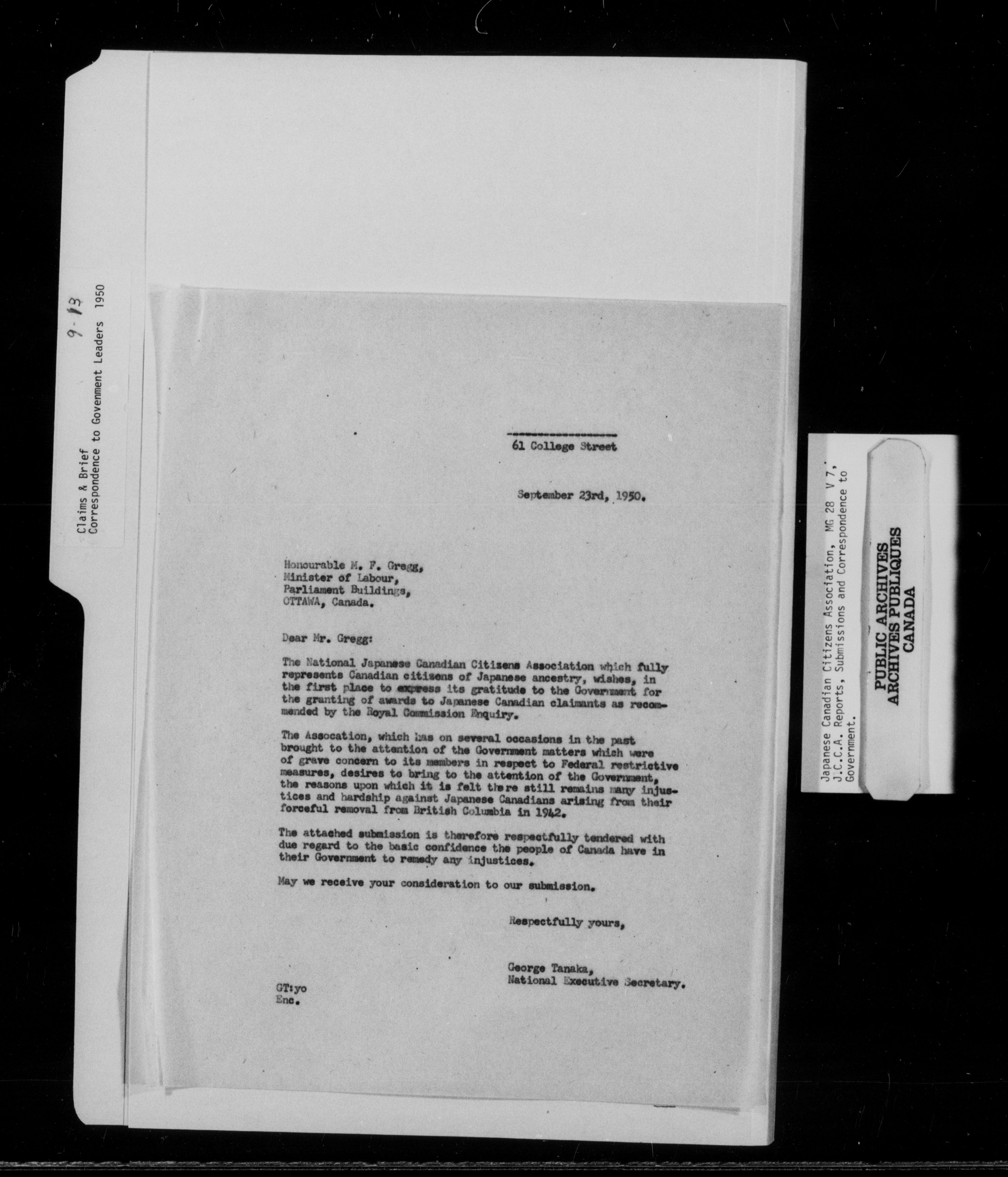 Japanese Canadian Citizen Association : Submissions and correspondence with government - 12826