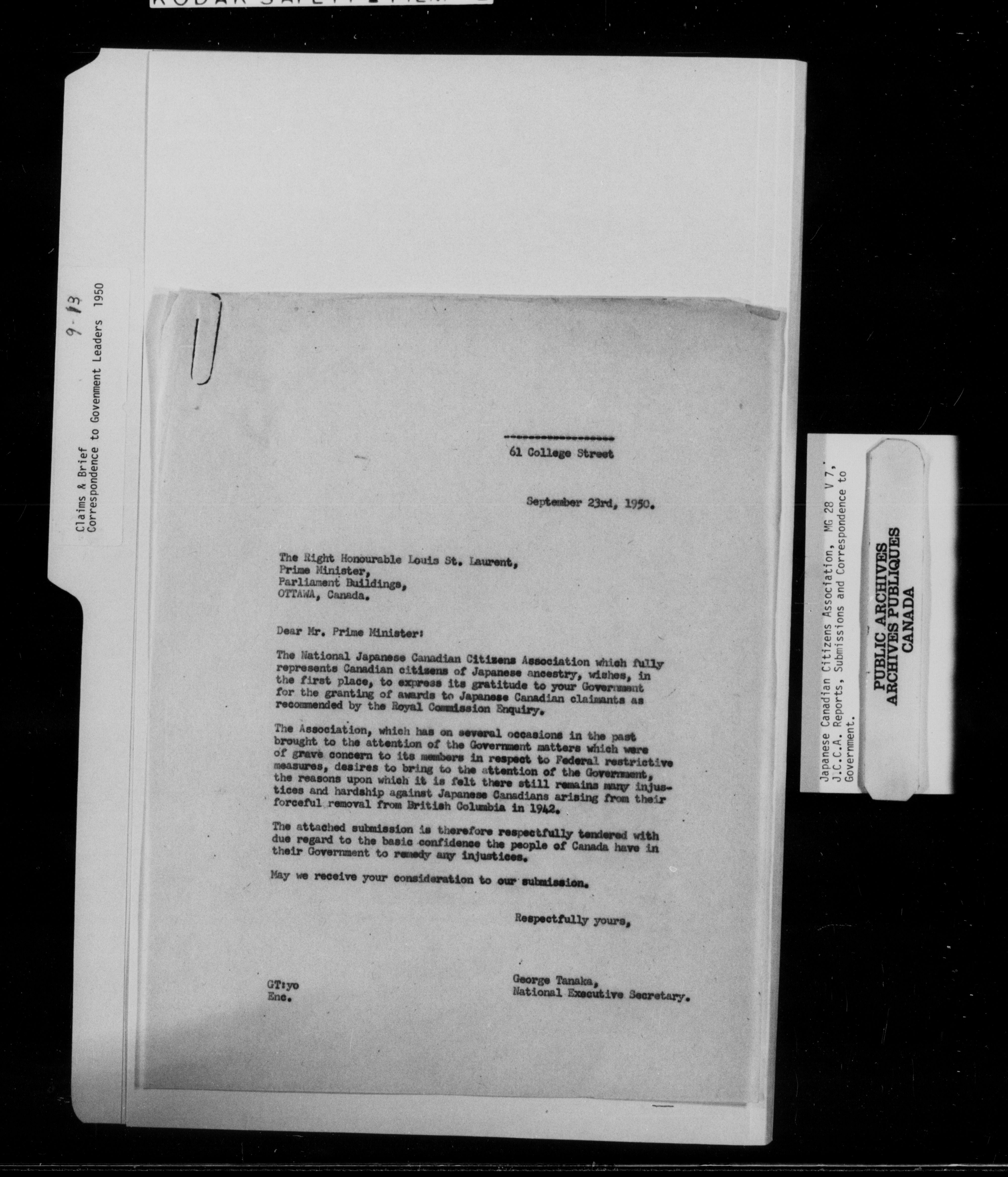 Japanese Canadian Citizen Association : Submissions and correspondence with government - 12826
