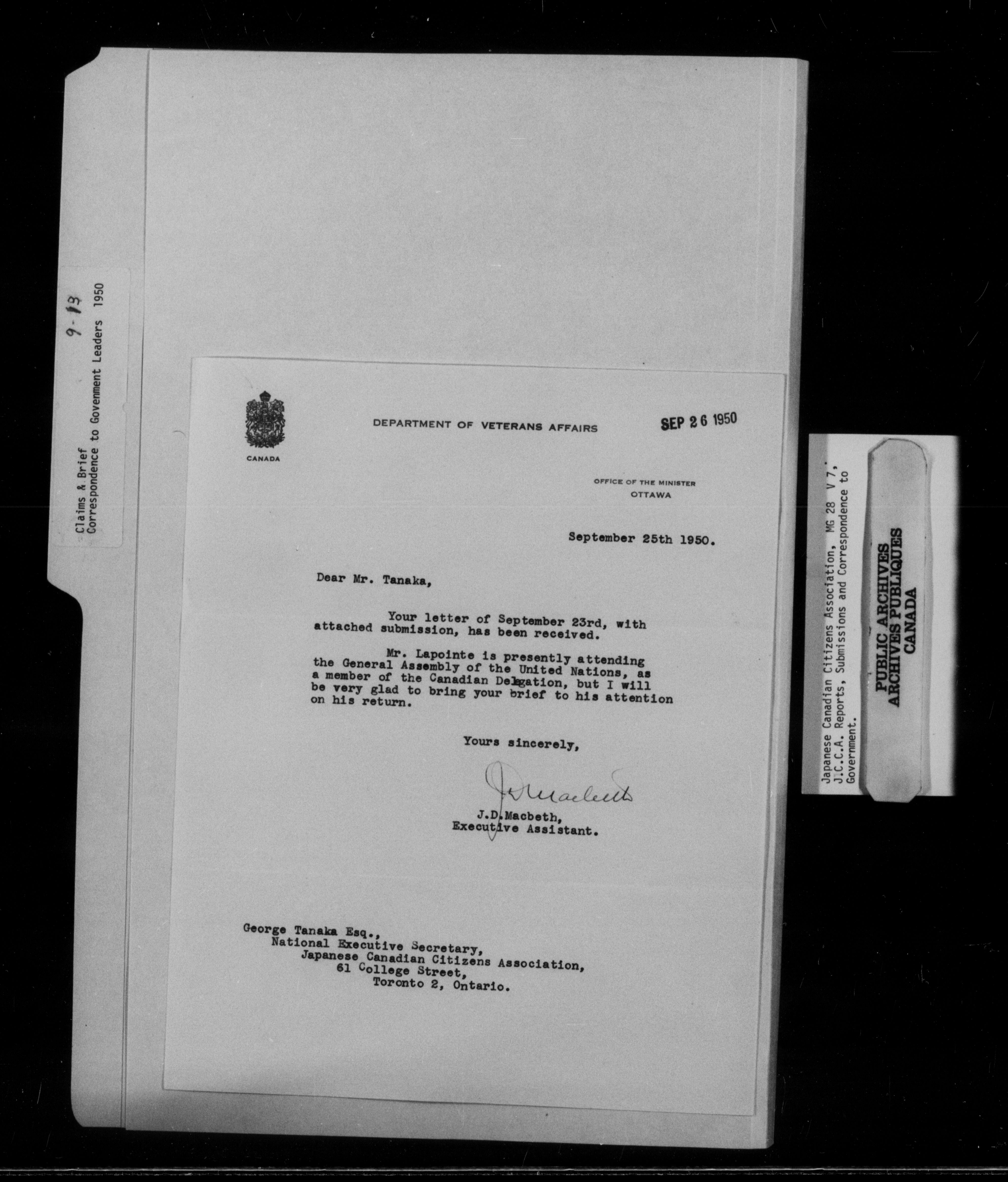 Japanese Canadian Citizen Association : Submissions and correspondence with government - 12826
