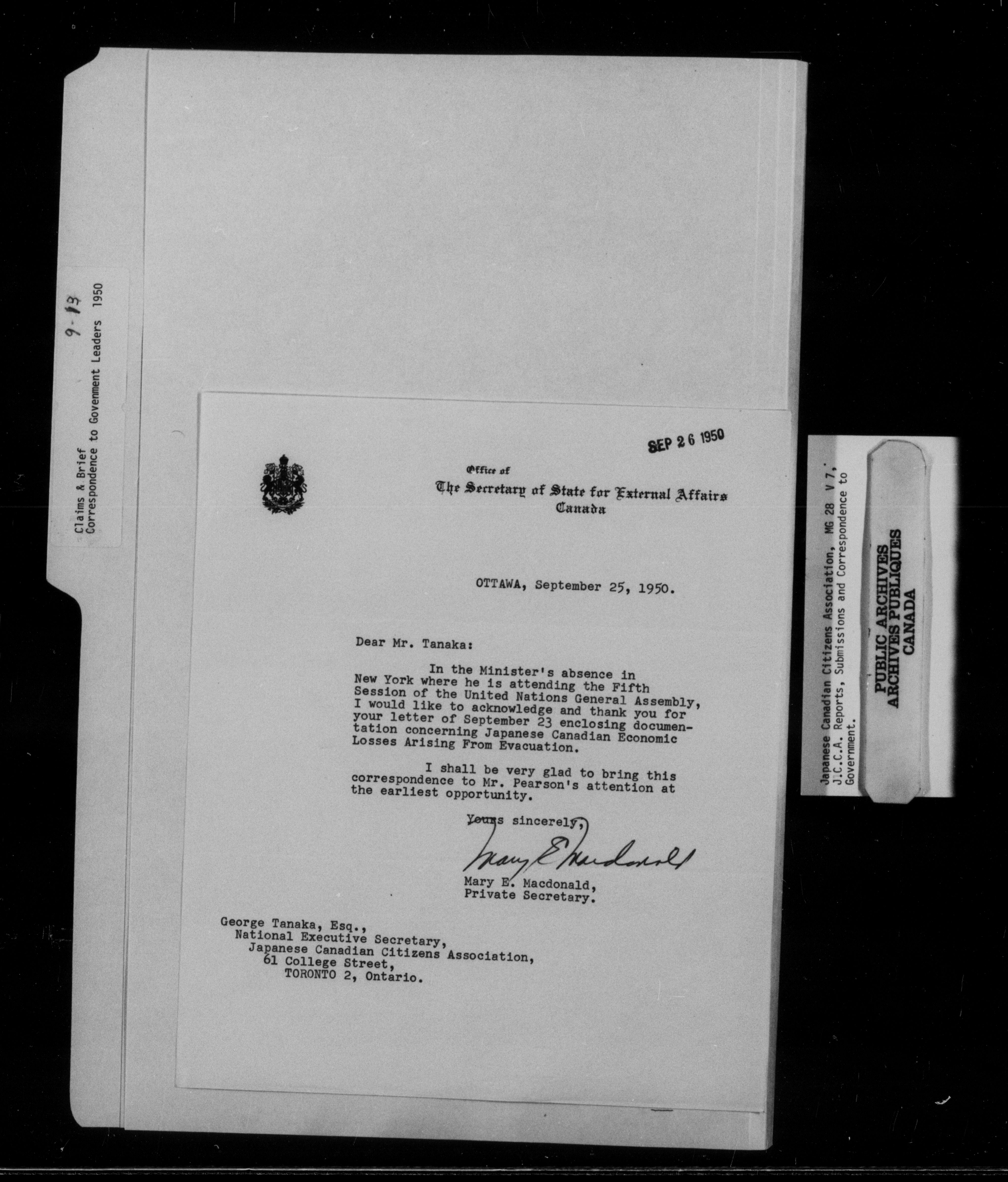 Japanese Canadian Citizen Association : Submissions and correspondence with government - 12826