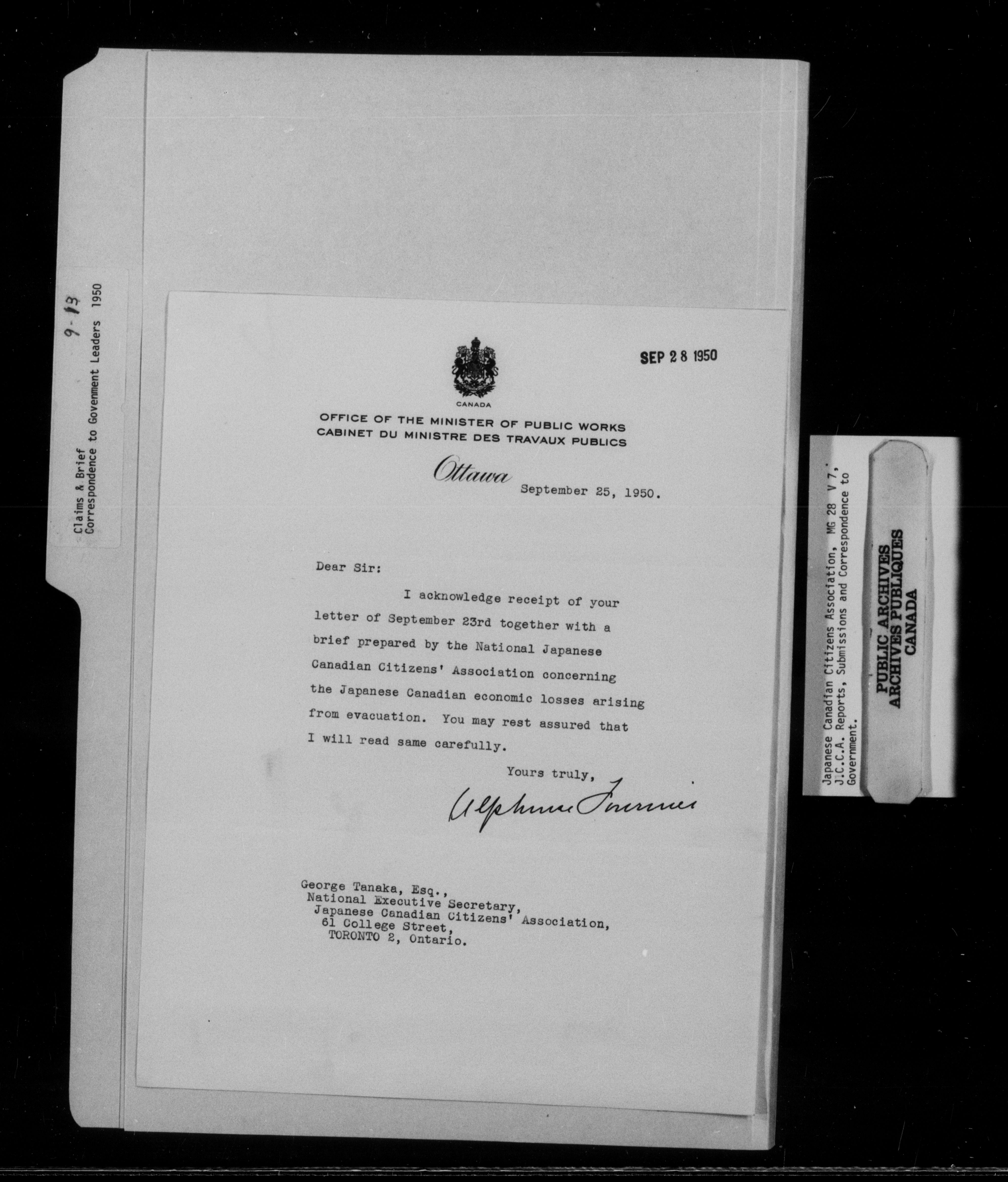 Japanese Canadian Citizen Association : Submissions and correspondence with government - 12826