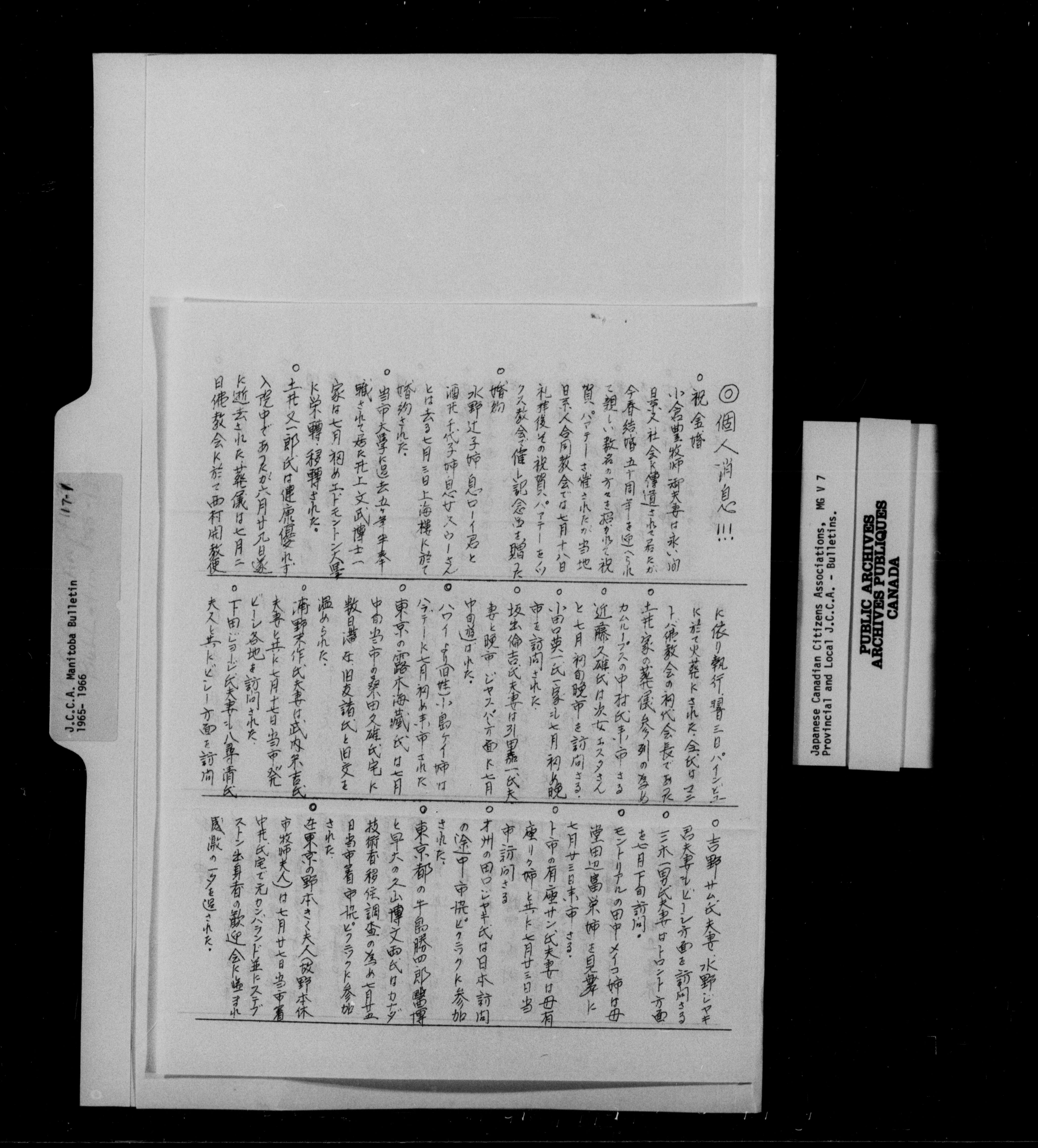 Japanese Canadian Citizen Association : Provincial and Local J.C.C.A. Bulletins - 12834