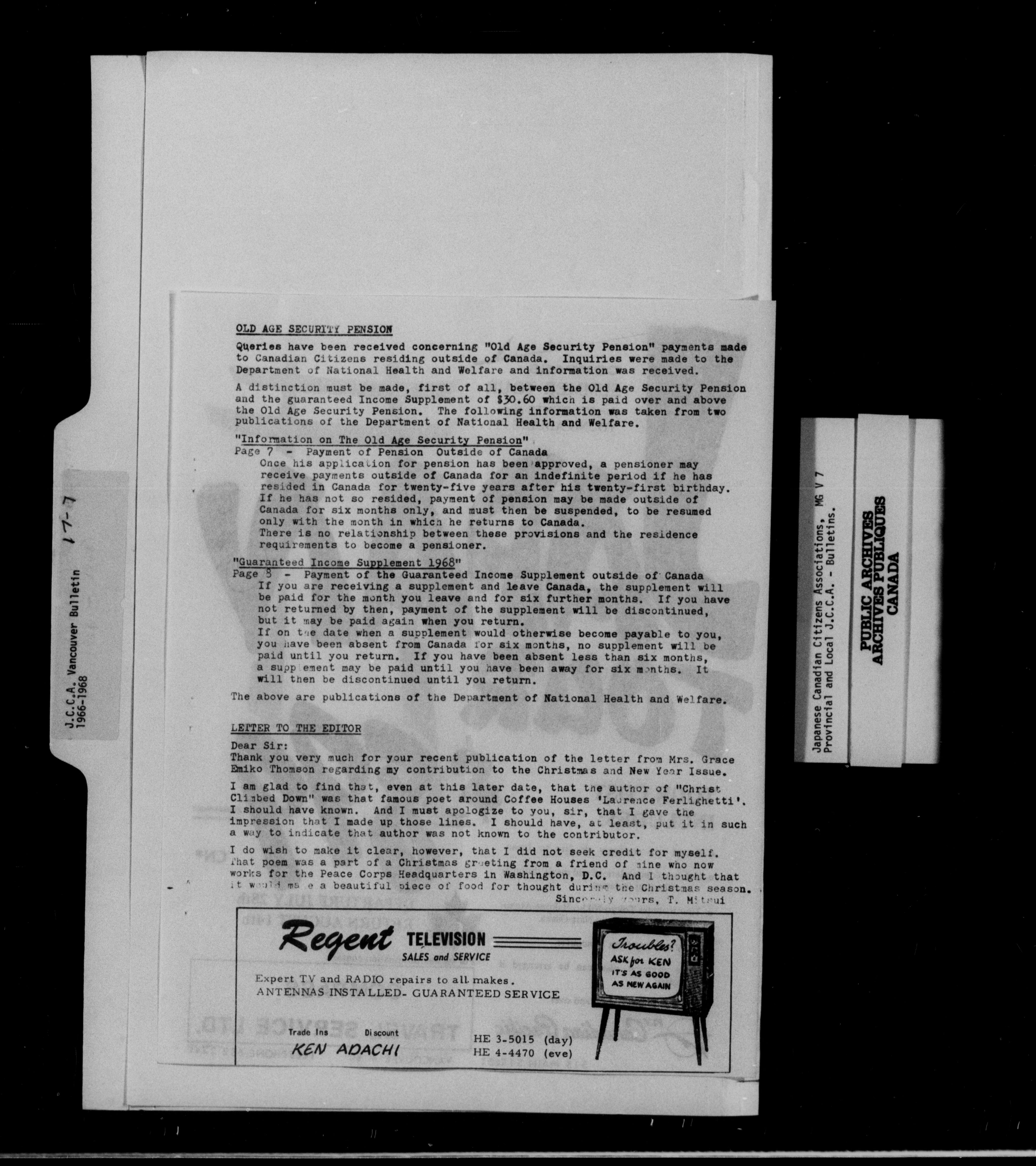 Japanese Canadian Citizen Association : Provincial and Local J.C.C.A. Bulletins - 12834