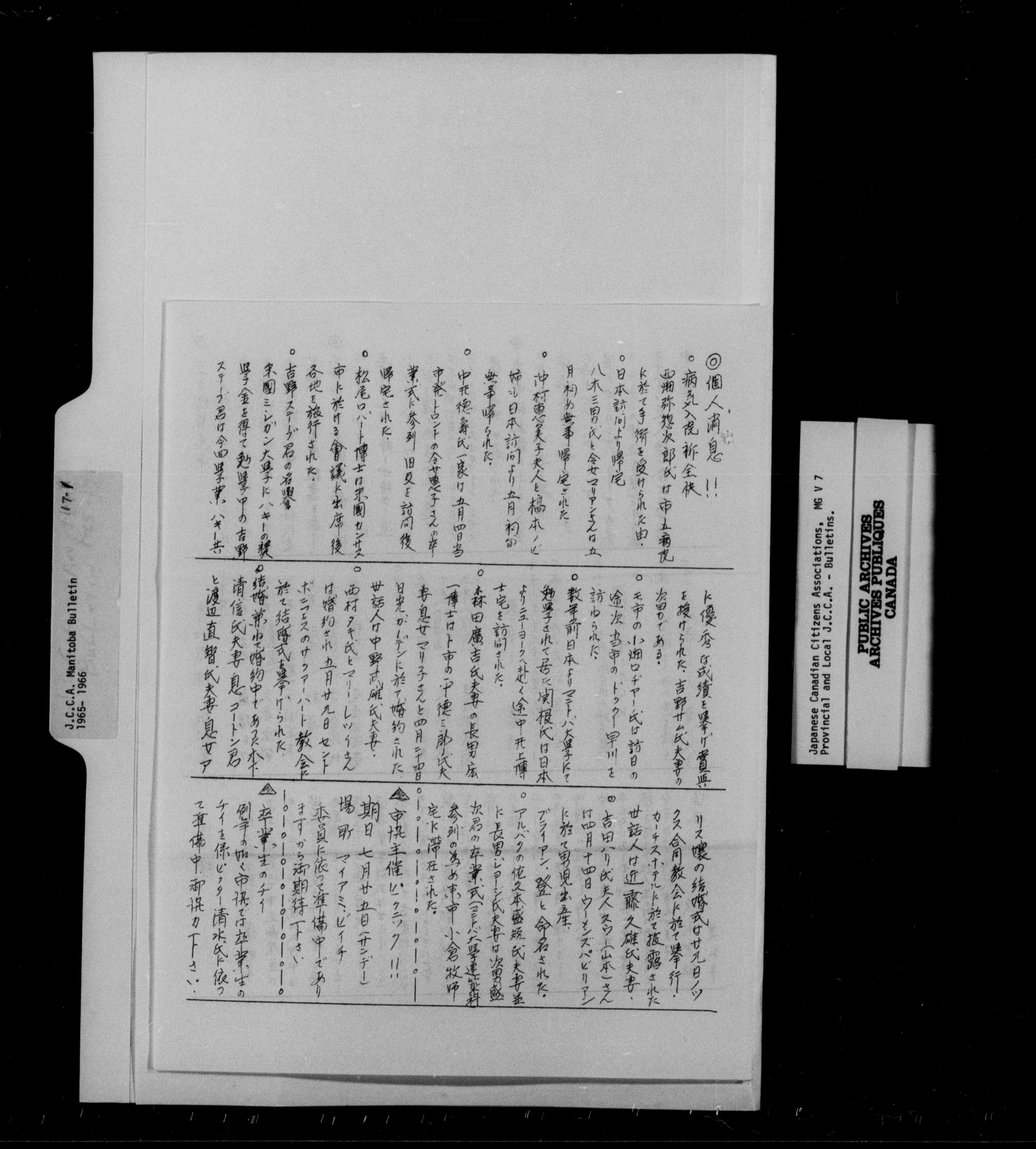 Japanese Canadian Citizen Association : Provincial and Local J.C.C.A. Bulletins - 12834