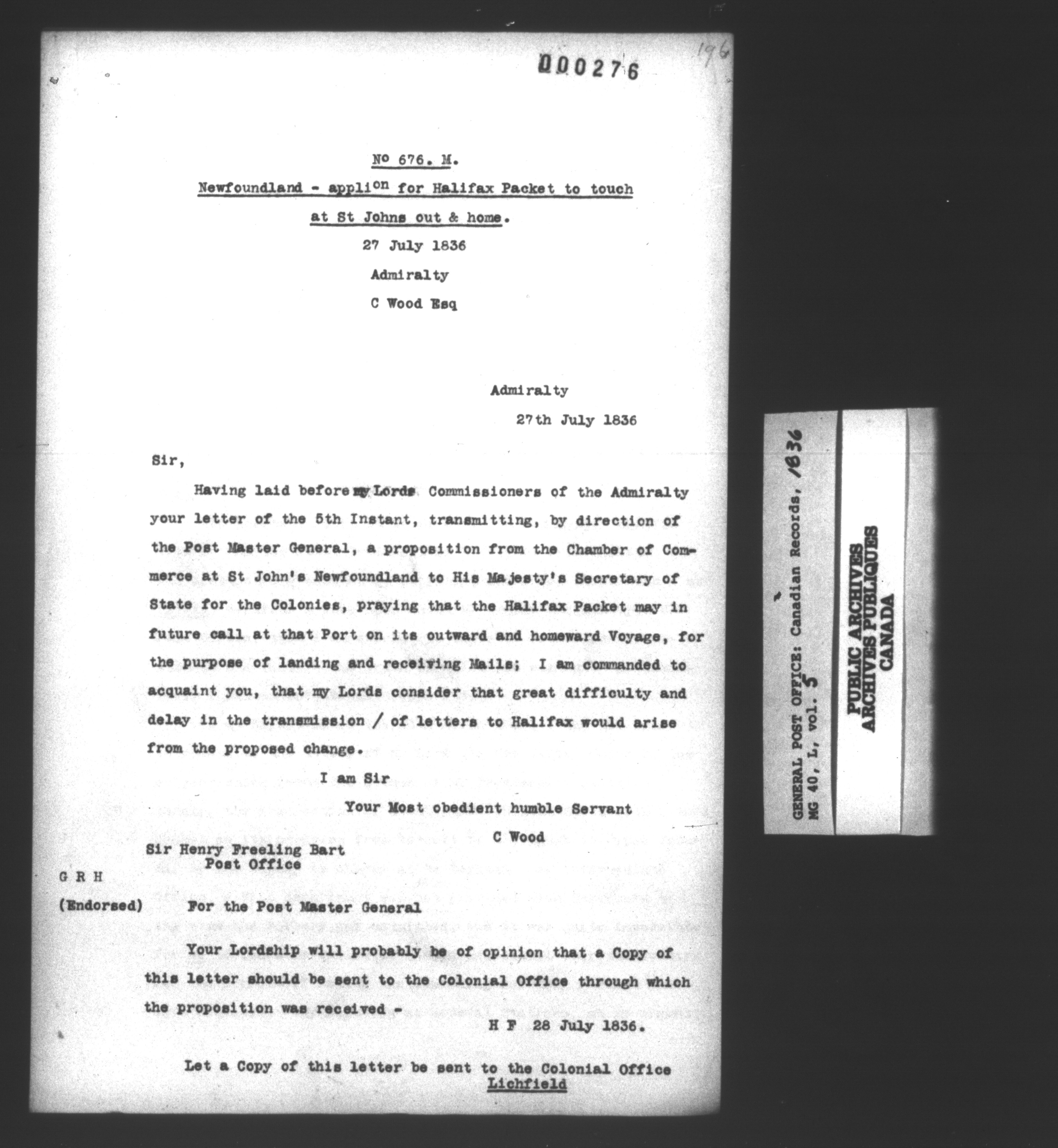 General Post Office of Great Britain transcripts of Canadian Records - 12859