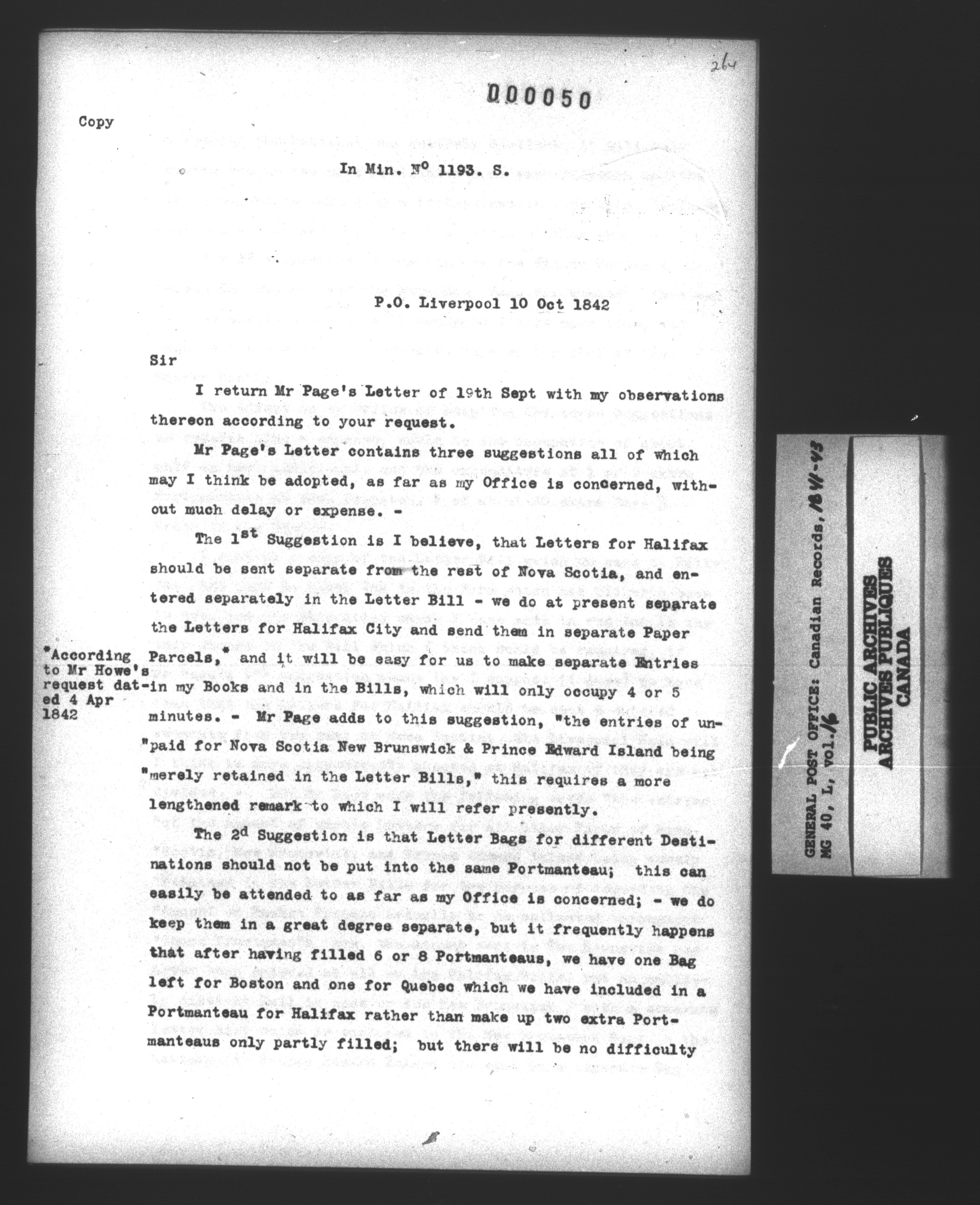 General Post Office of Great Britain transcripts of Canadian Records - 12862