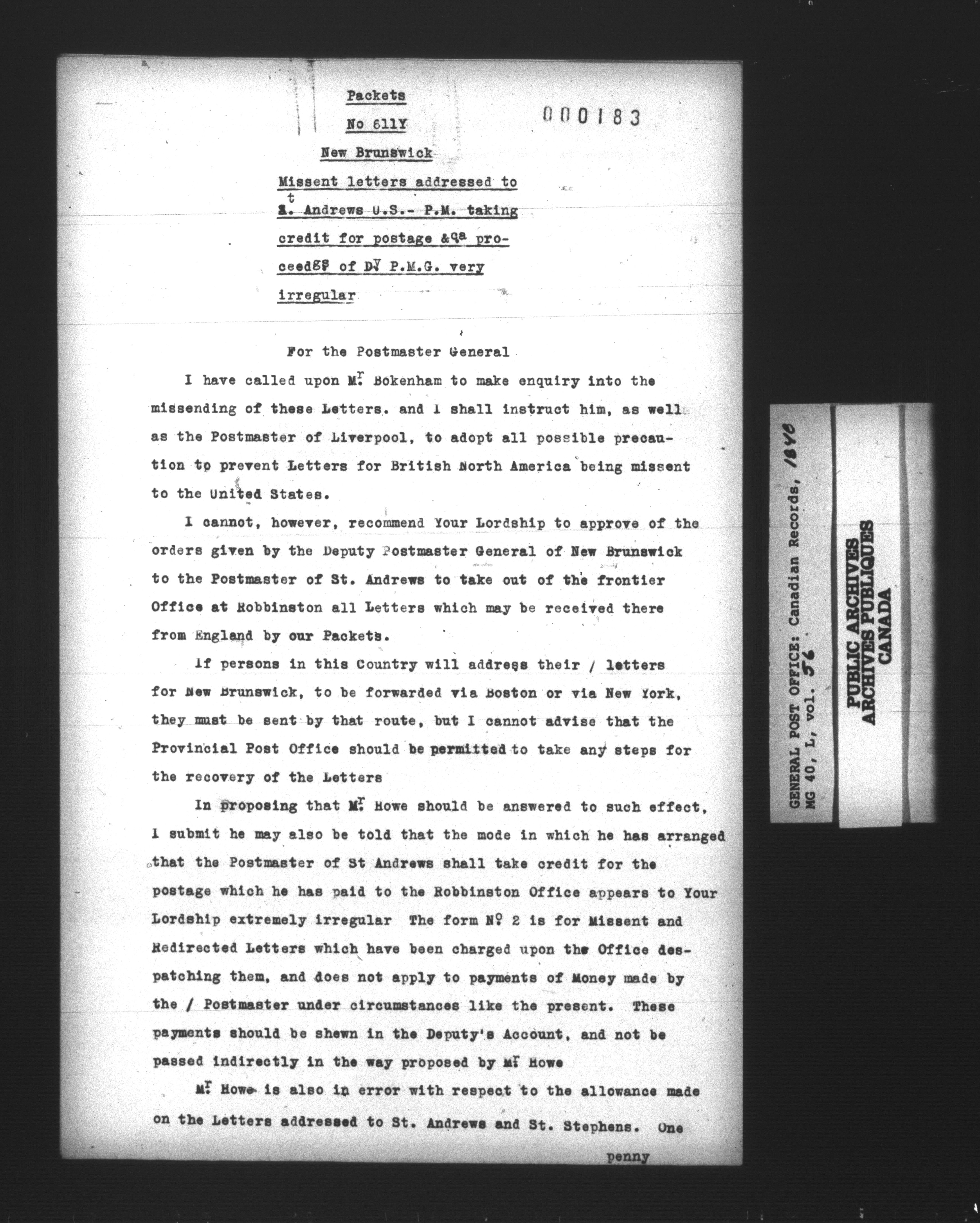 General Post Office of Great Britain Canadian Records - 12887