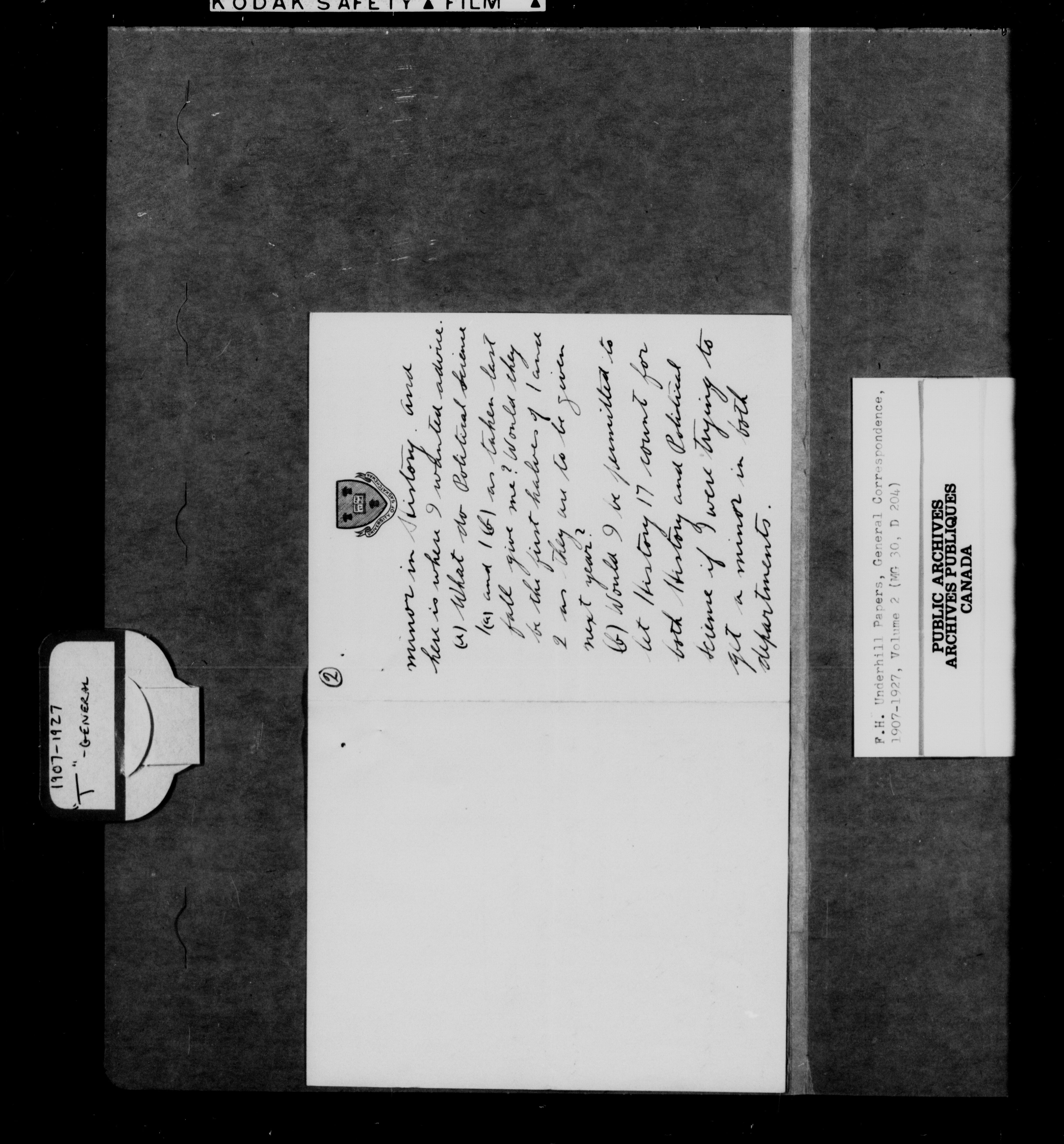 Frank Hawkins Underhill : General correspondence : C-12915