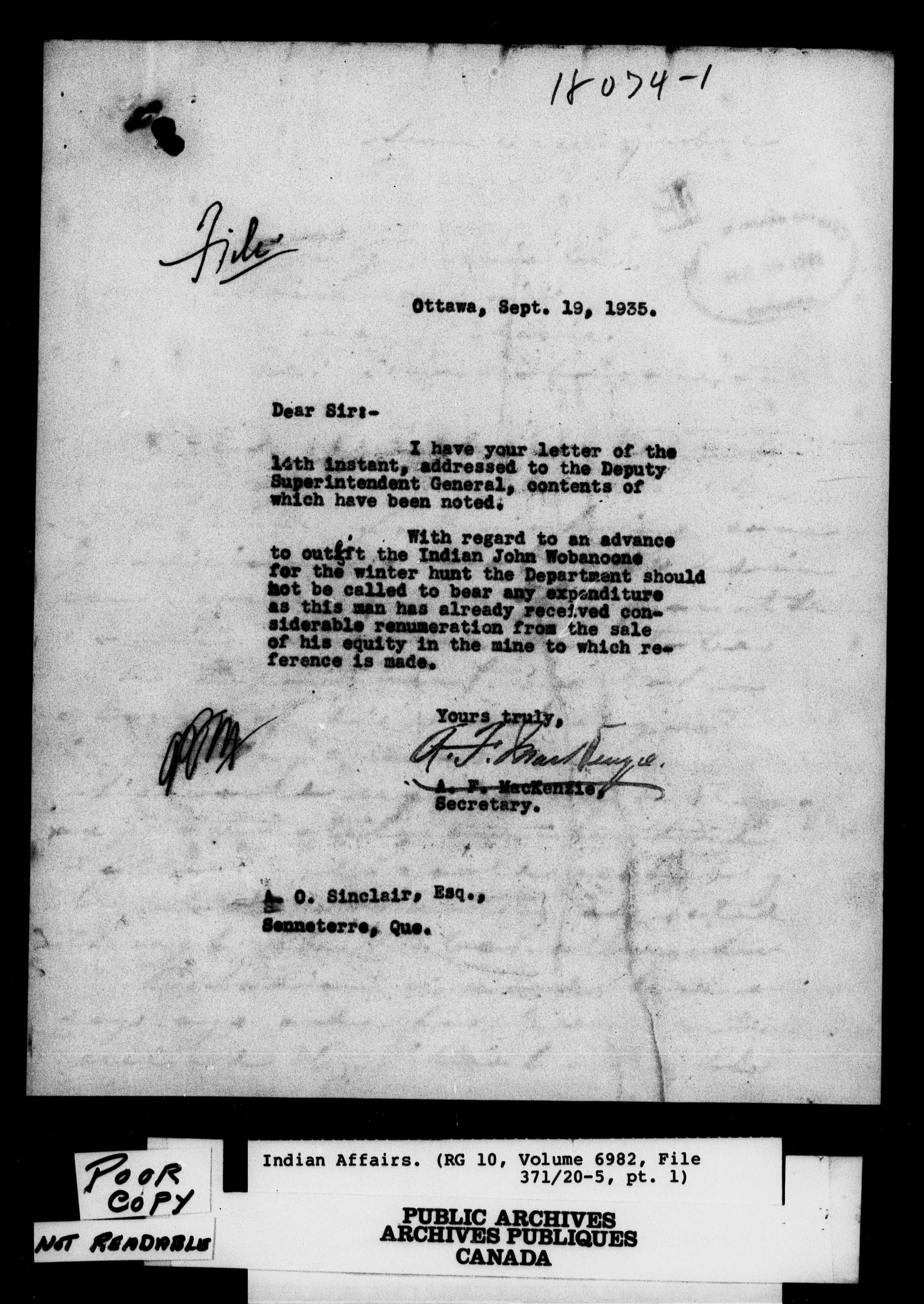 Indian and Inuit Affairs Program : Modified duplex numeric system : C-12937