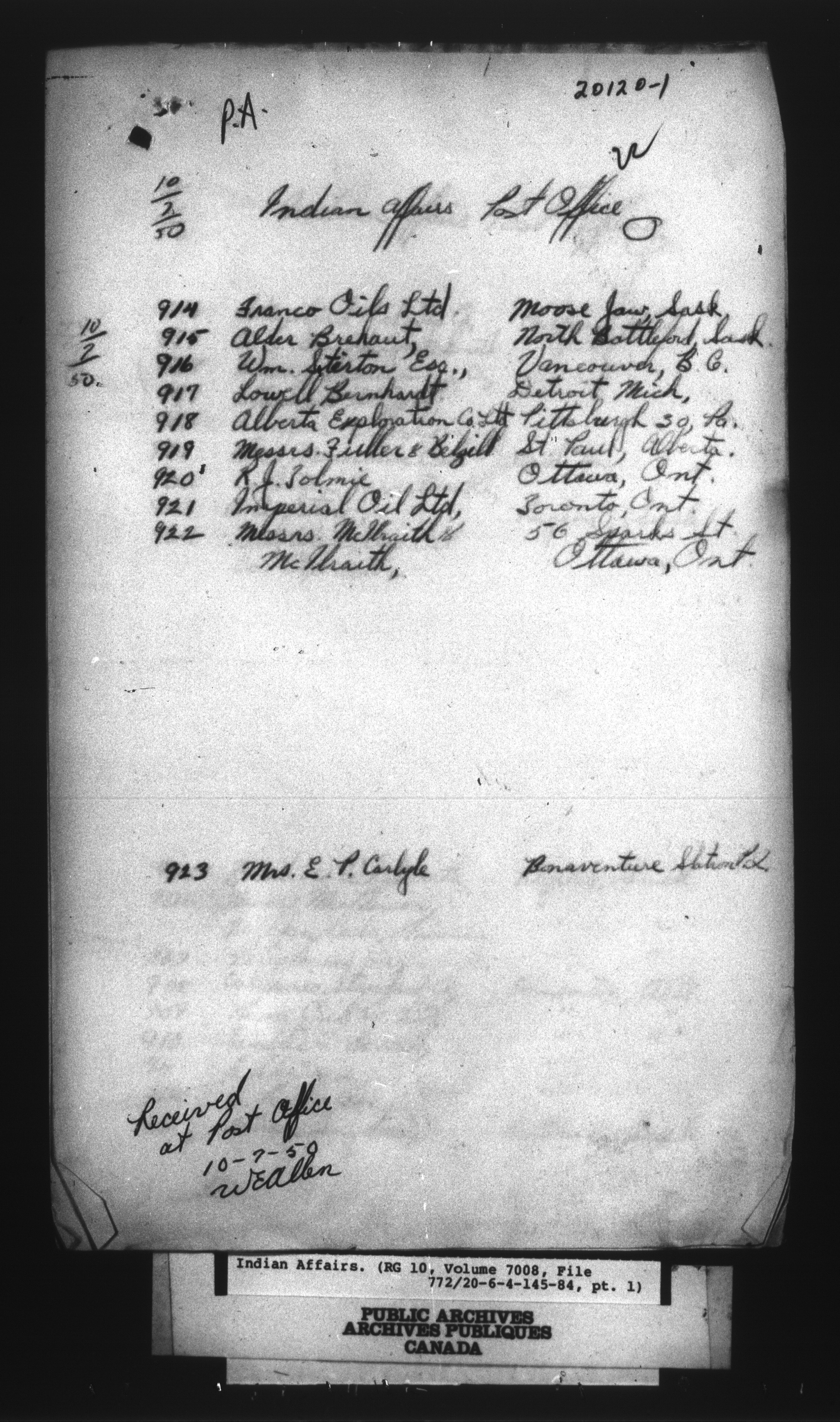 Indian and Inuit Affairs Program : Modified duplex numeric system : C-12948
