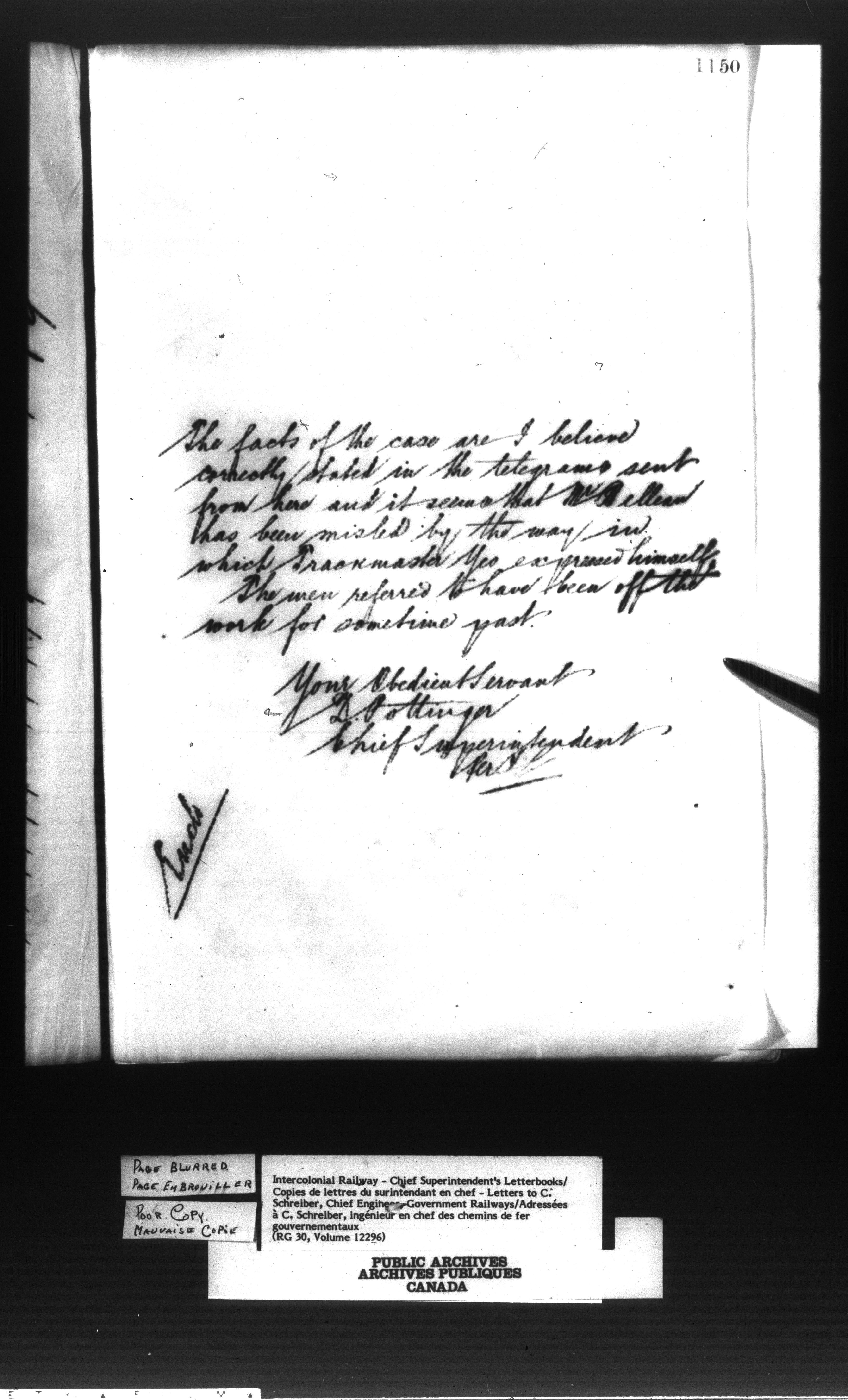 Canadian Government Railways : Office of the Superintendent, Correspondence : C-12977