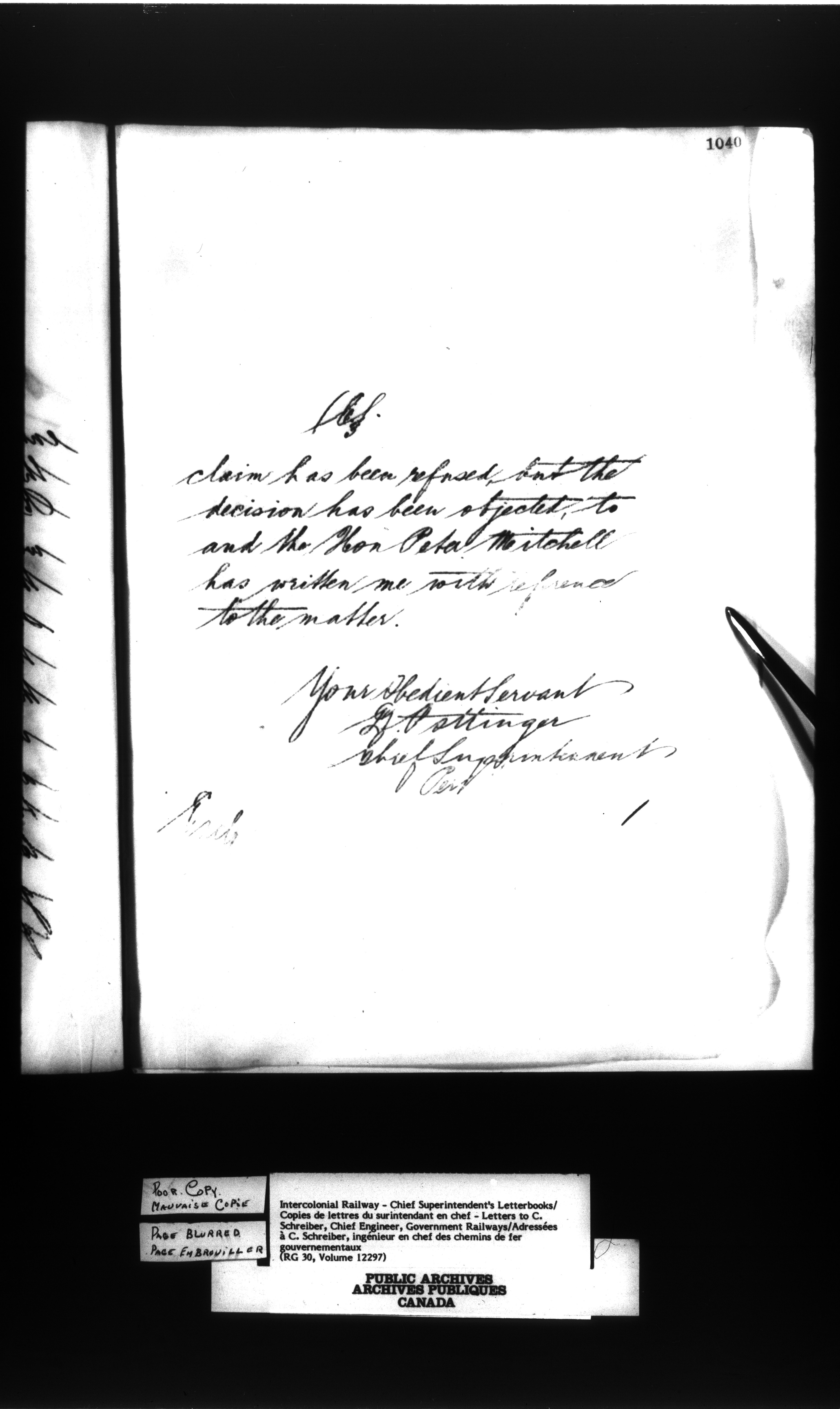 Canadian Government Railways : Office of the Superintendent, Correspondence - 12978