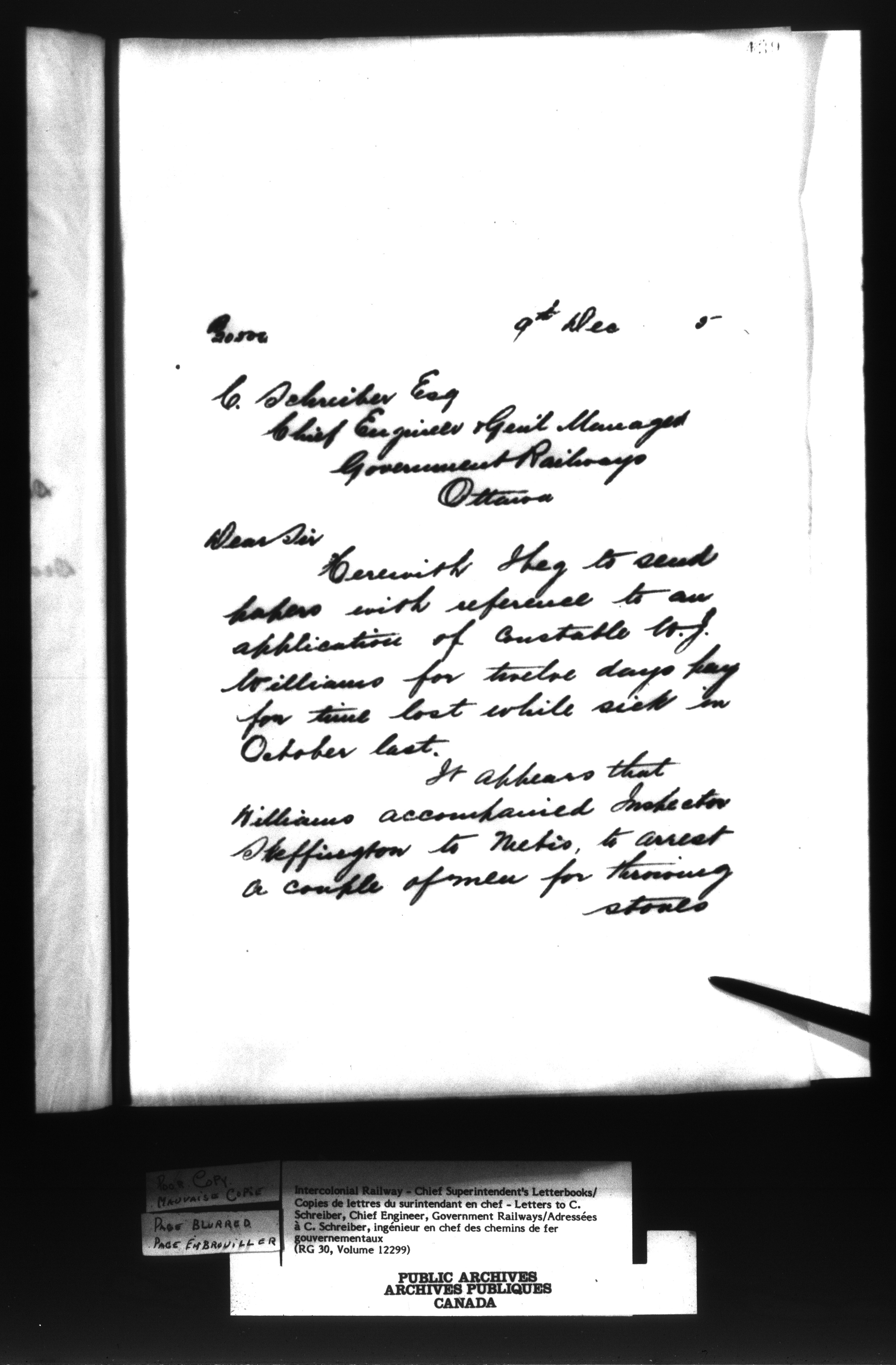 Canadian Government Railways : Office of the Superintendent, Correspondence : C-12979