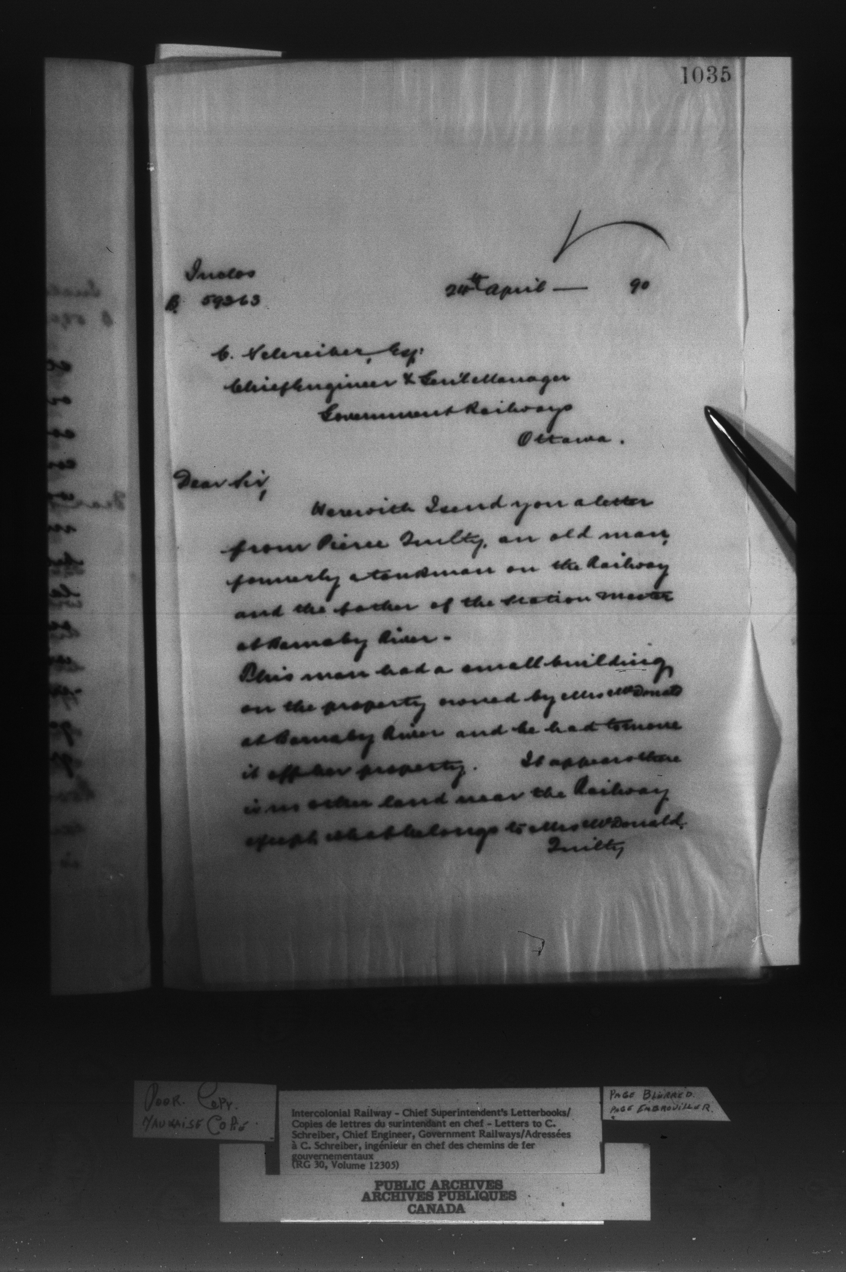 Canadian Government Railways : Office of the Superintendent, Correspondence : C-12987