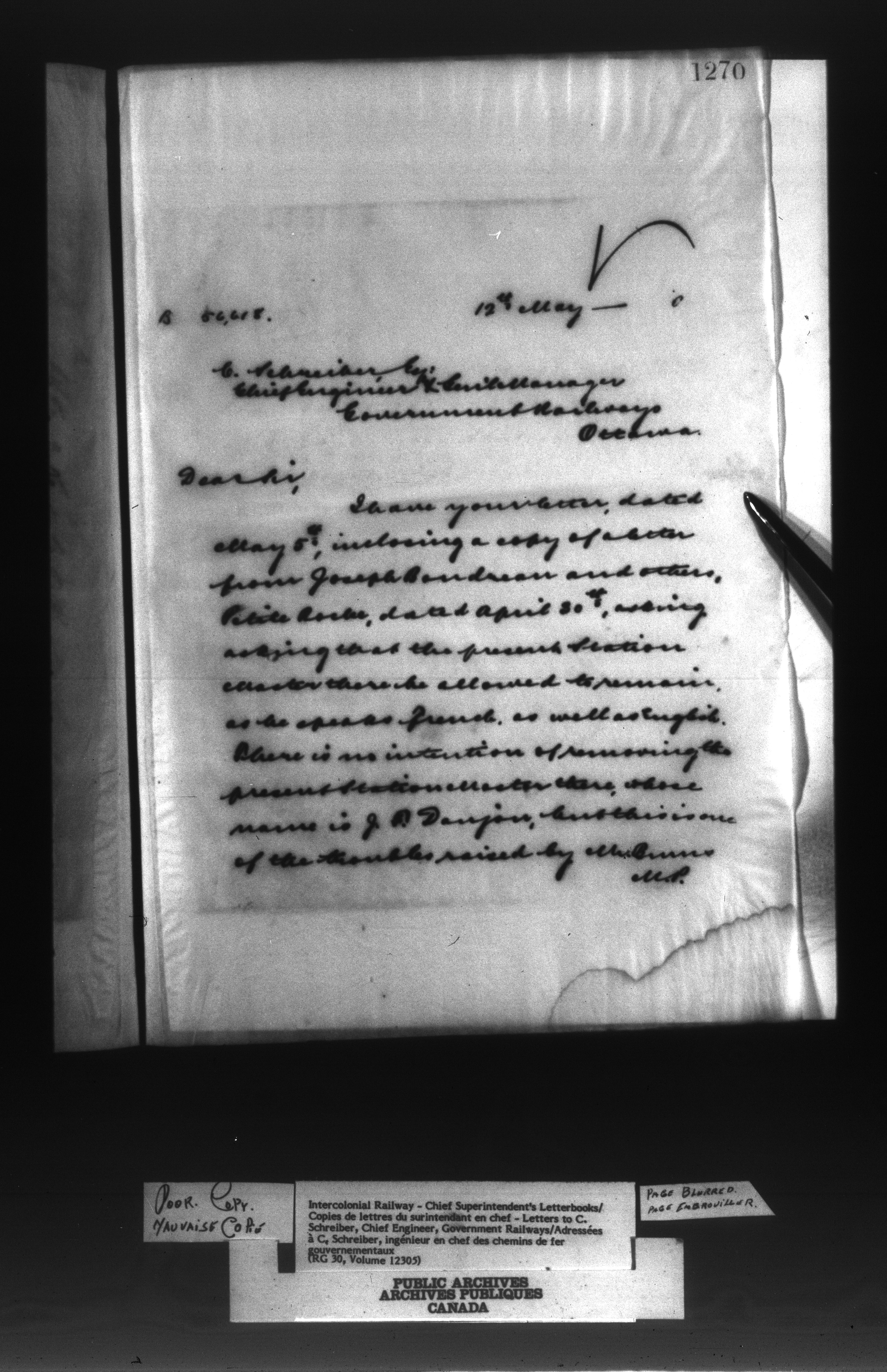 Canadian Government Railways : Office of the Superintendent, Correspondence - 12988