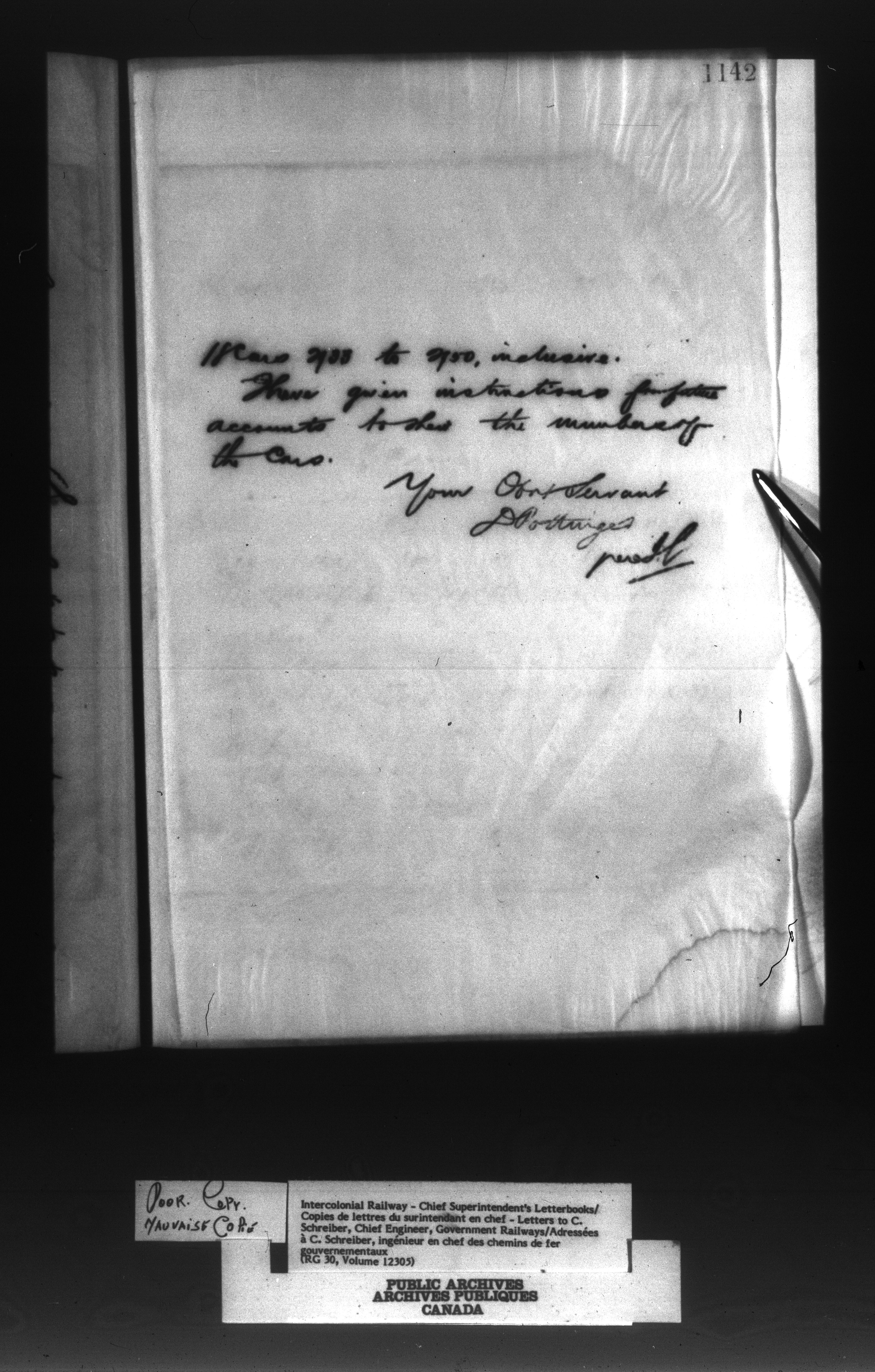Canadian Government Railways : Office of the Superintendent, Correspondence - 12988