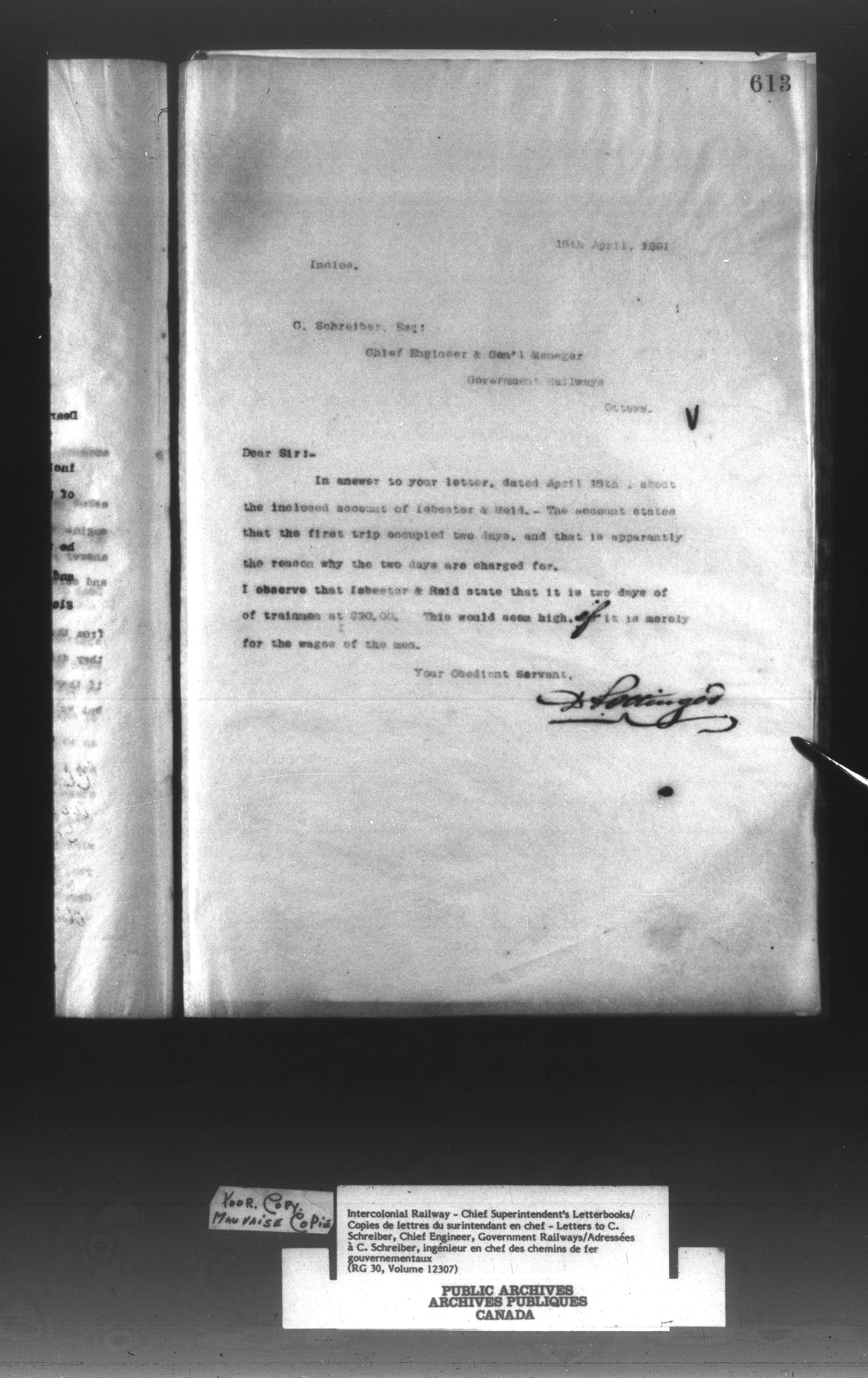 Canadian Government Railways : Office of the Superintendent, Correspondence - 12990