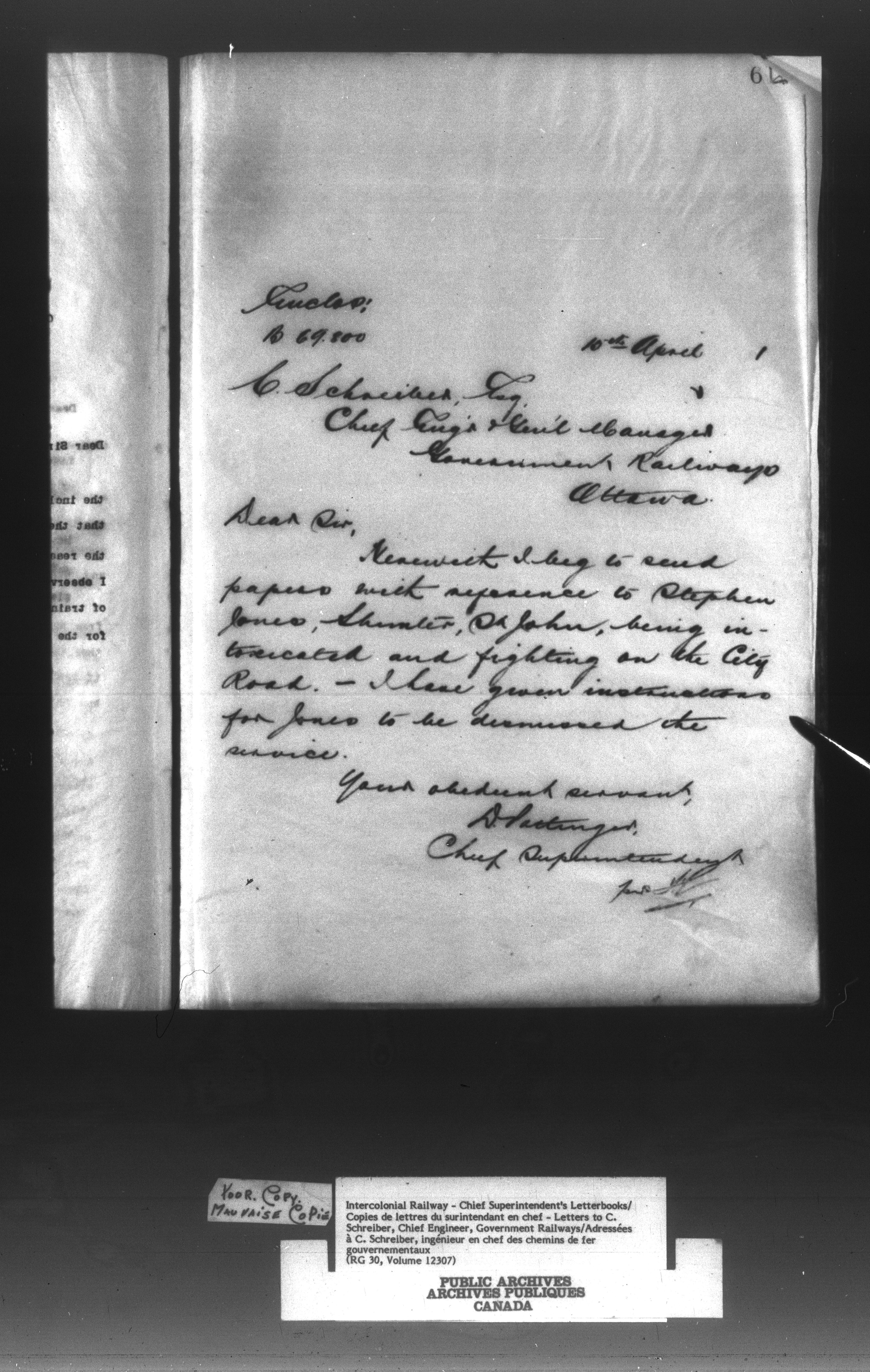 Canadian Government Railways : Office of the Superintendent, Correspondence - 12990