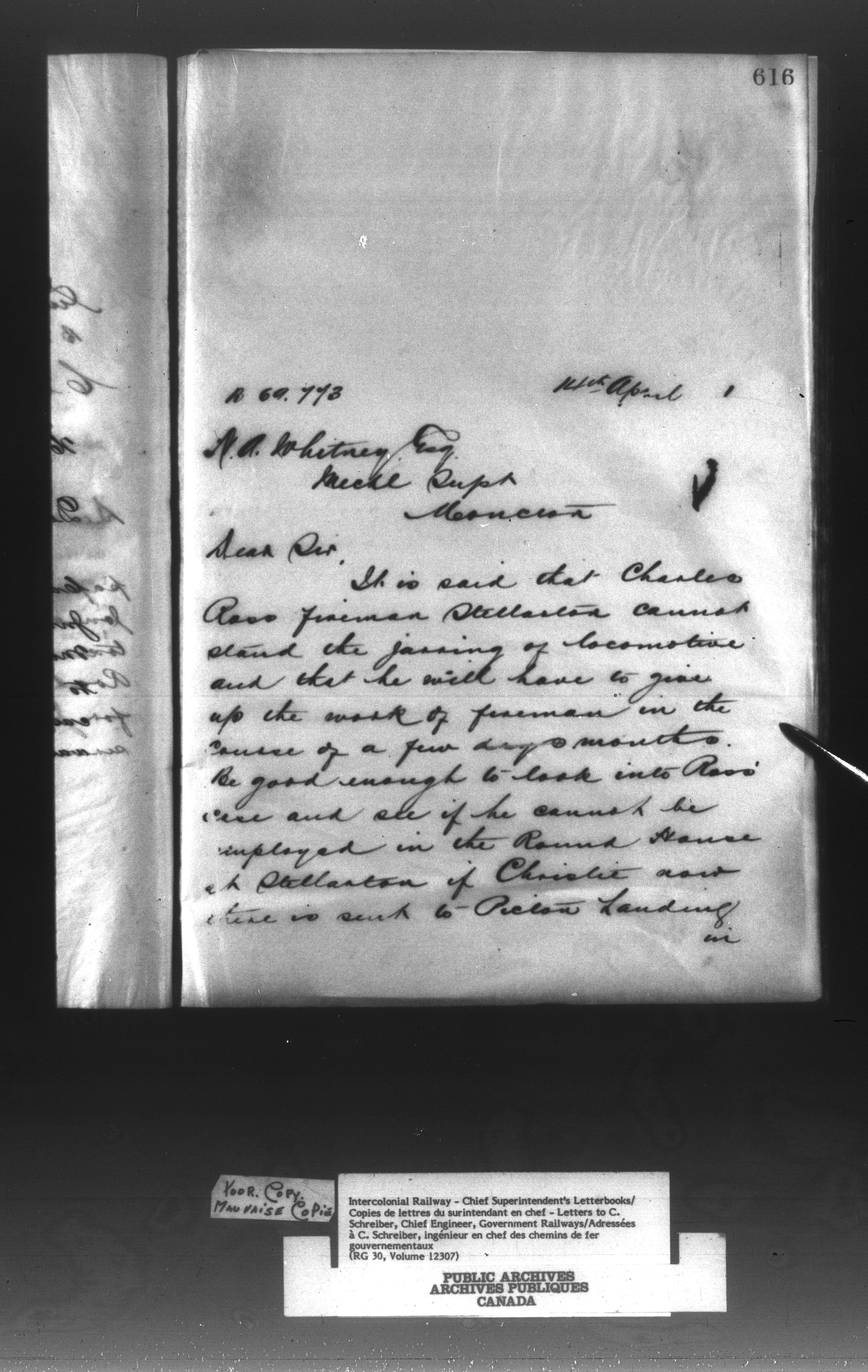 Canadian Government Railways : Office of the Superintendent, Correspondence - 12990