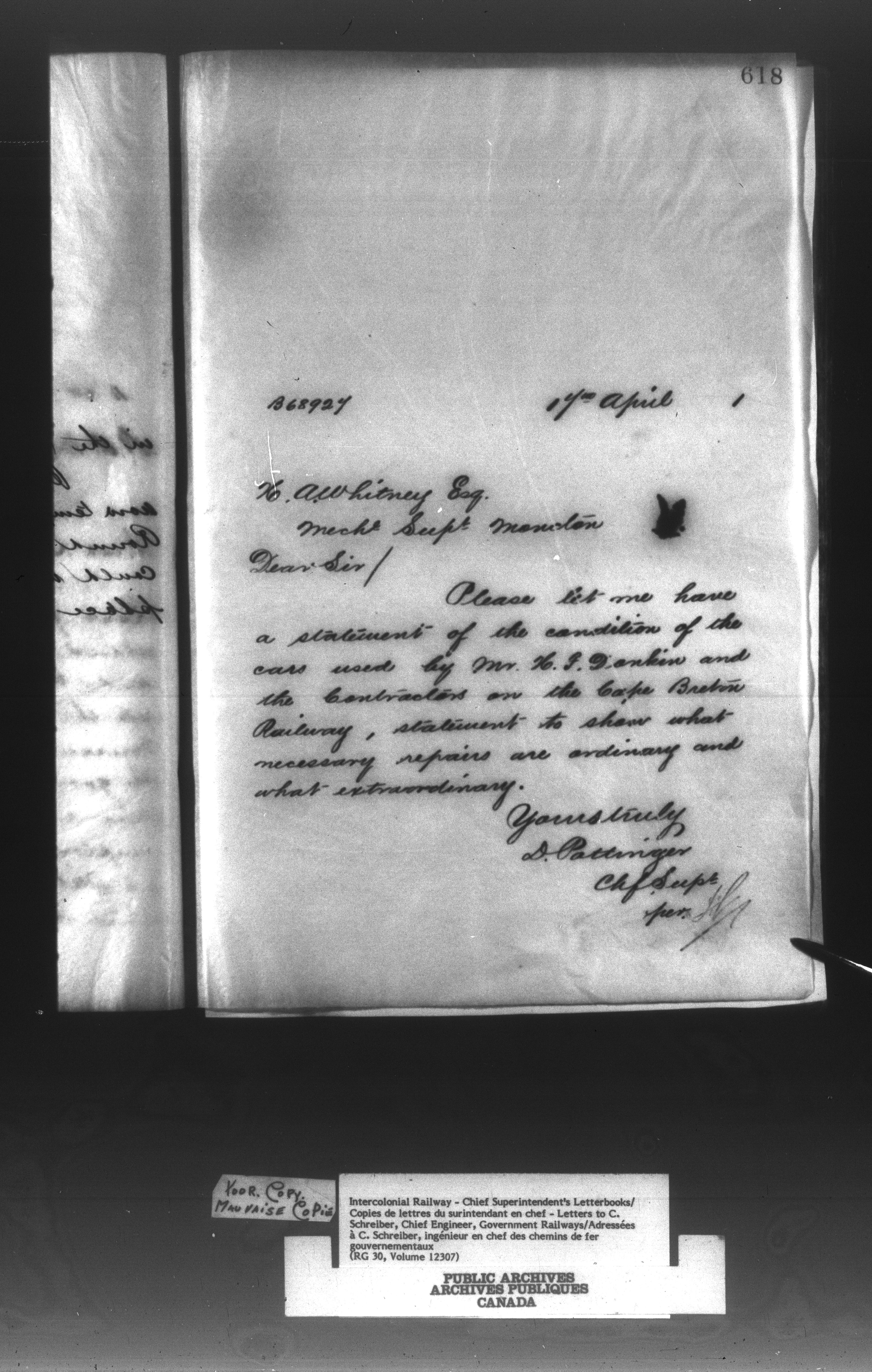 Canadian Government Railways : Office of the Superintendent, Correspondence - 12990