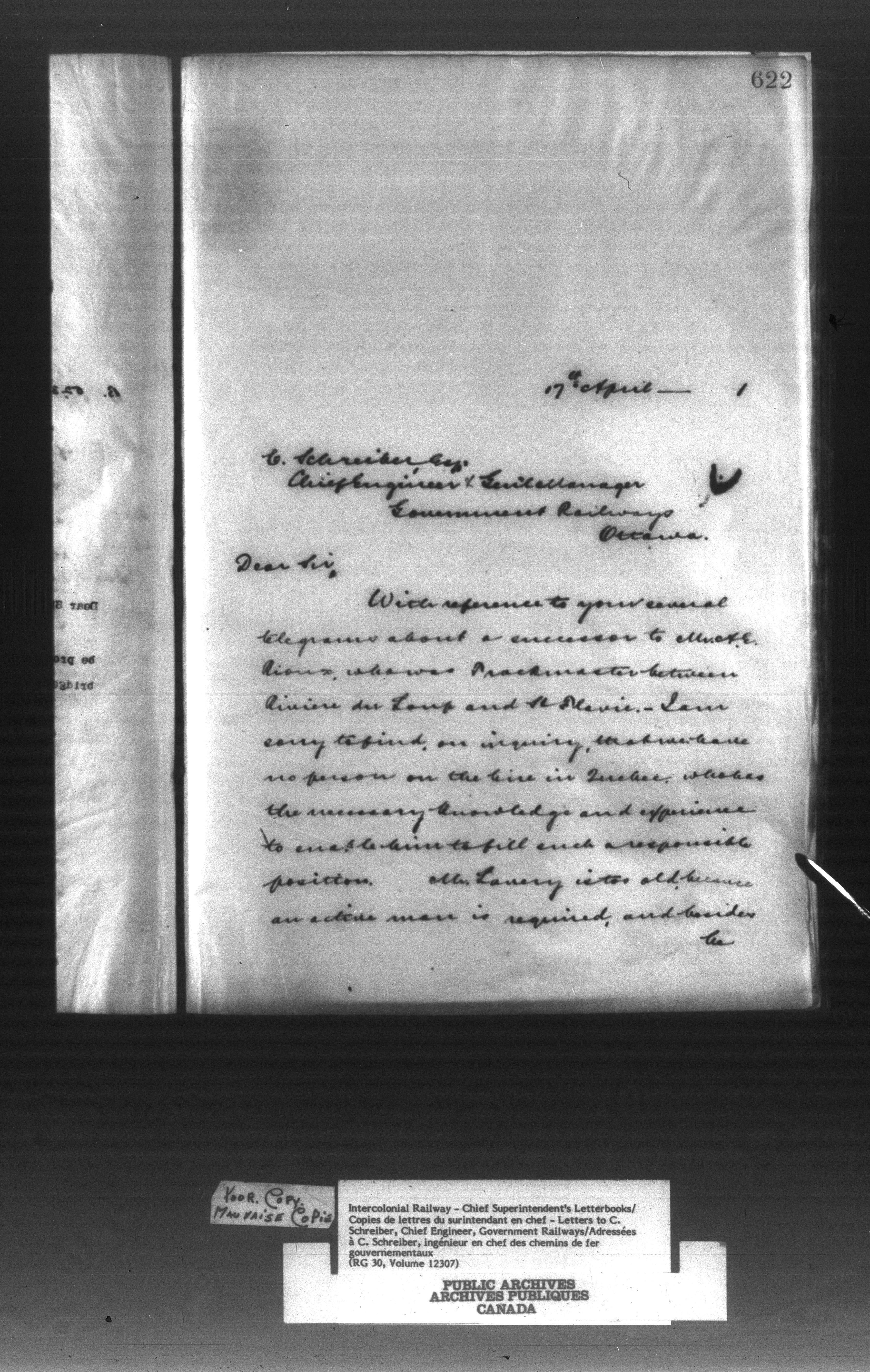 Canadian Government Railways : Office of the Superintendent, Correspondence - 12990