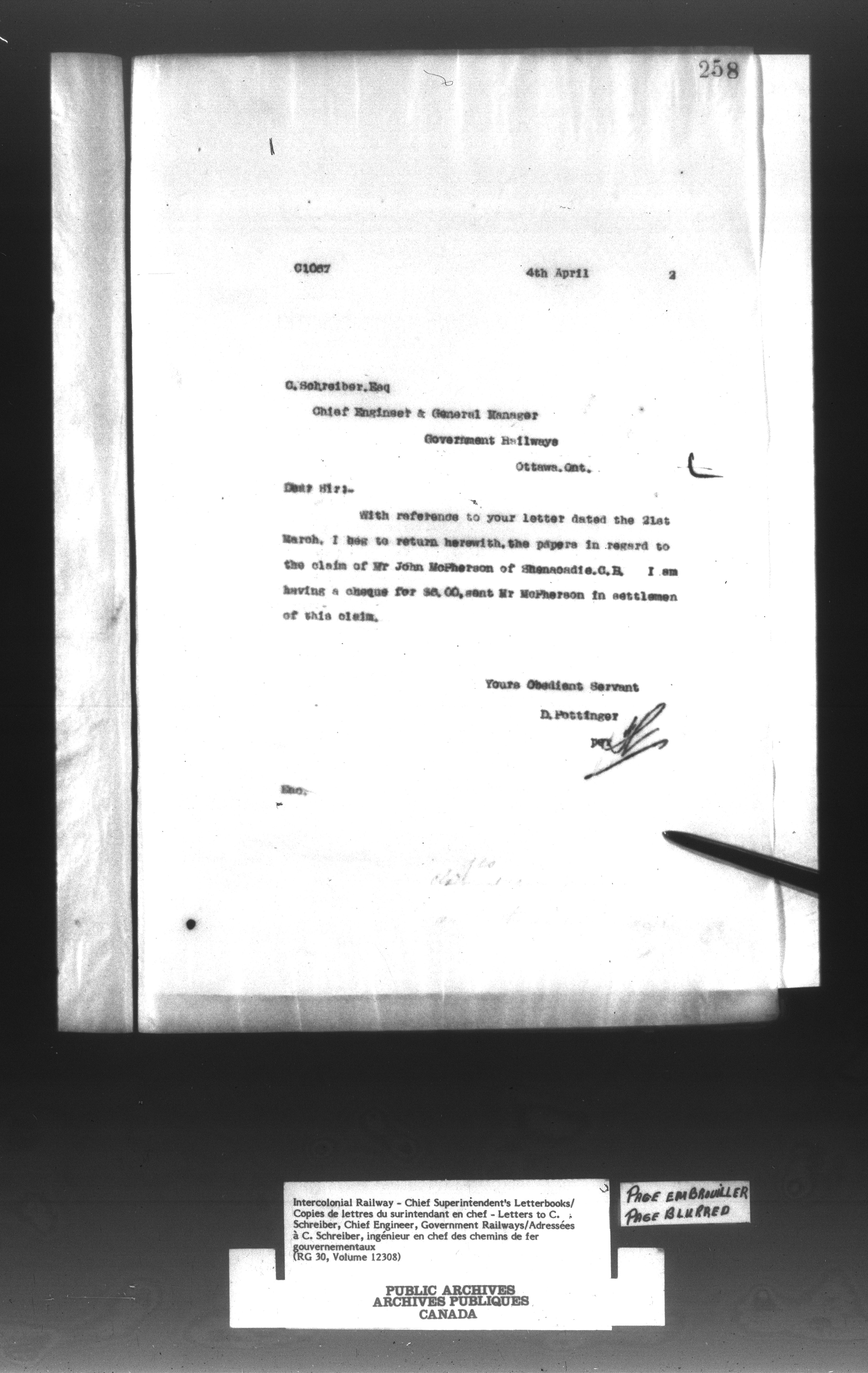 Canadian Government Railways : Office of the Superintendent, Correspondence - 12991