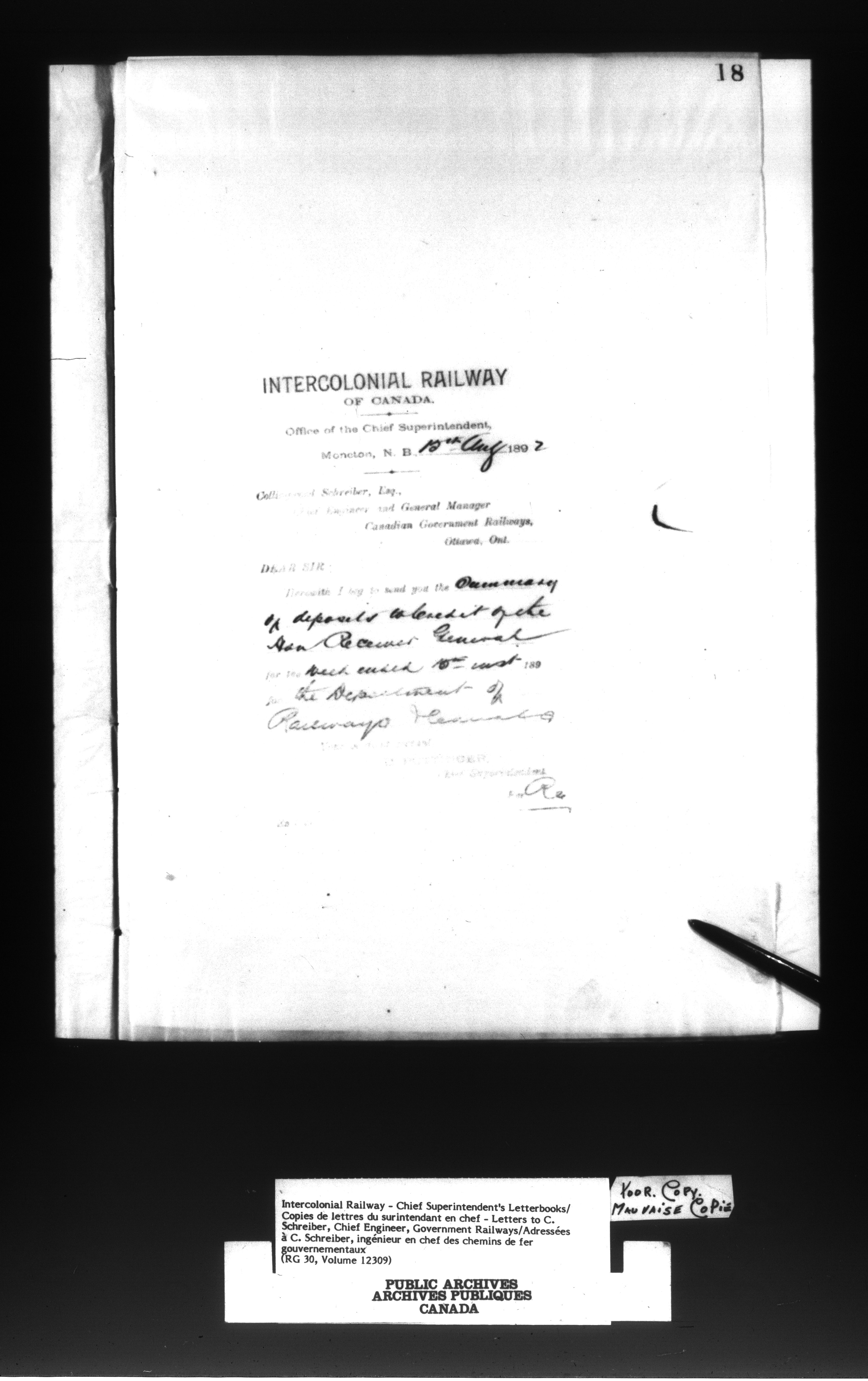 Canadian Government Railways : Office of the Superintendent, Correspondence - 12992