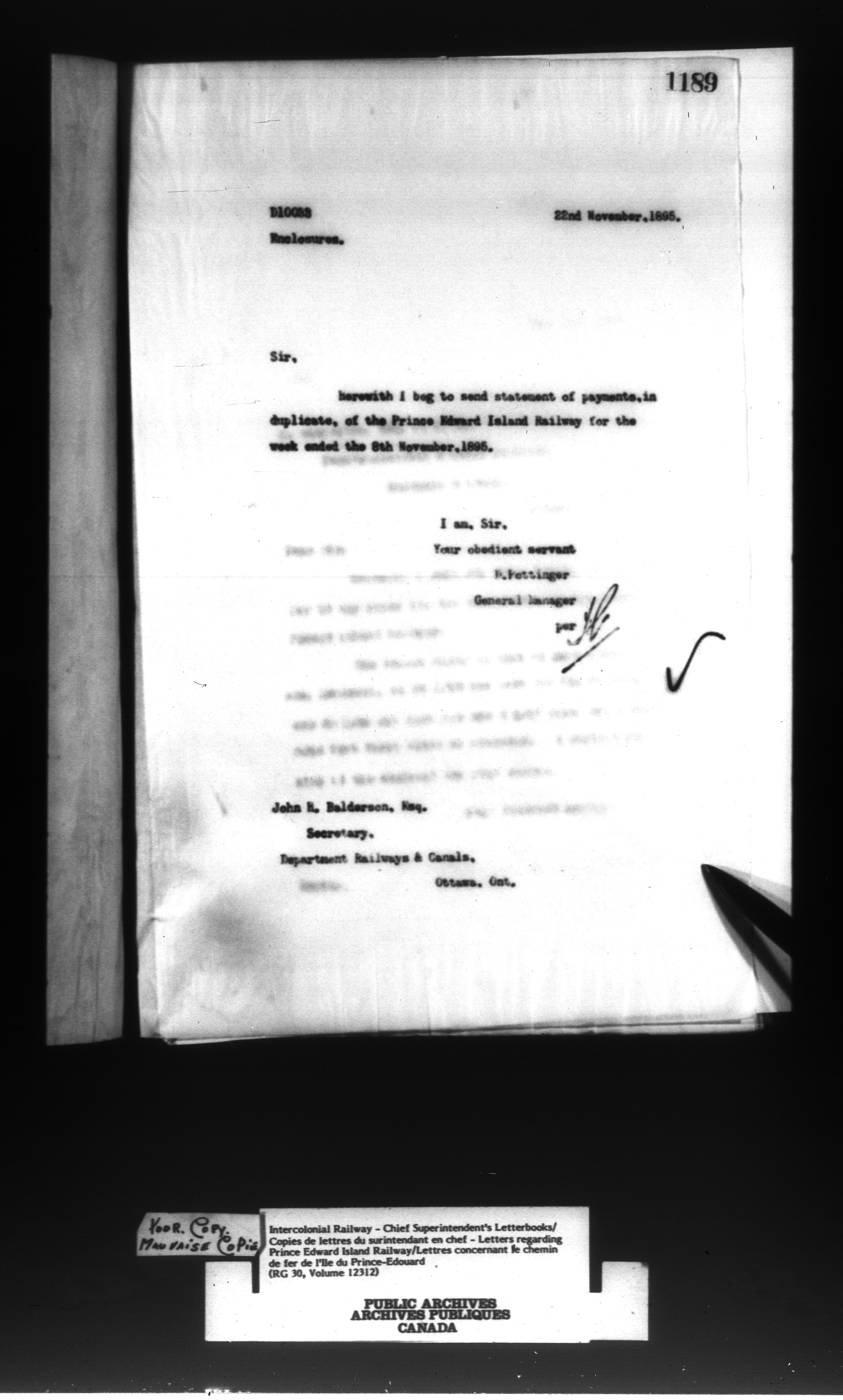 Canadian Government Railways : Office of the Superintendent, Correspondence - 12995